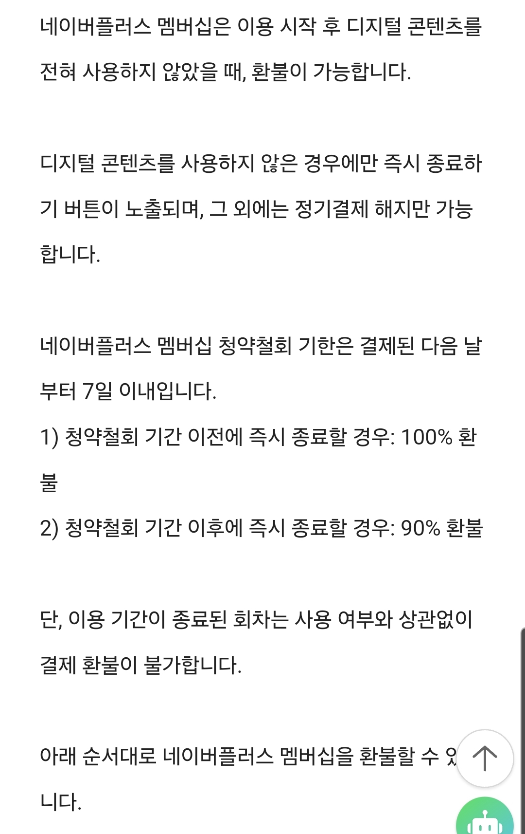 ✔️네이버플러스 연간이용권 결제 다음 날부터 7일 이내 해지를 한다면 전액 환불이 됩니다