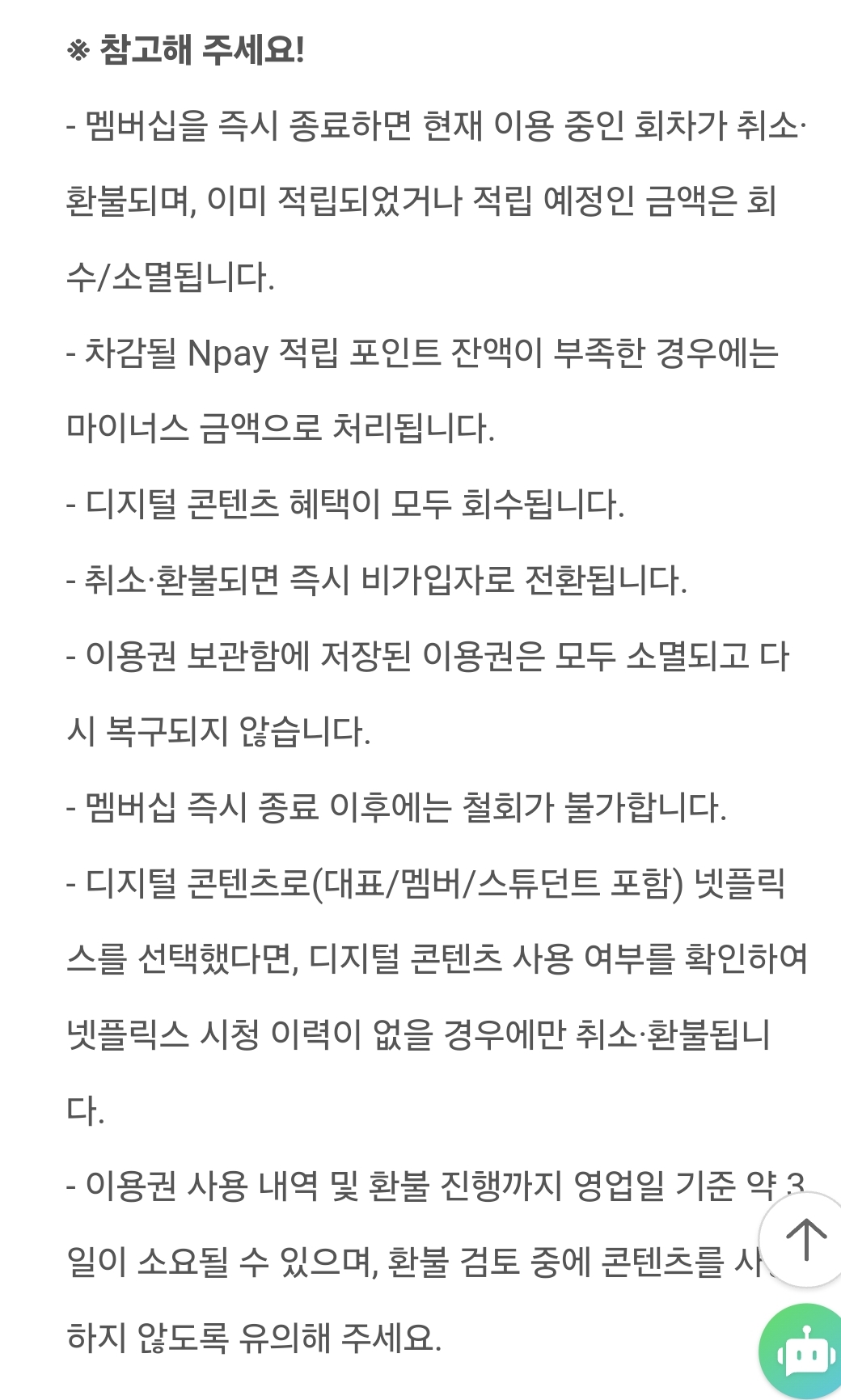 멤버십 종료는 되돌릴 수 없음)