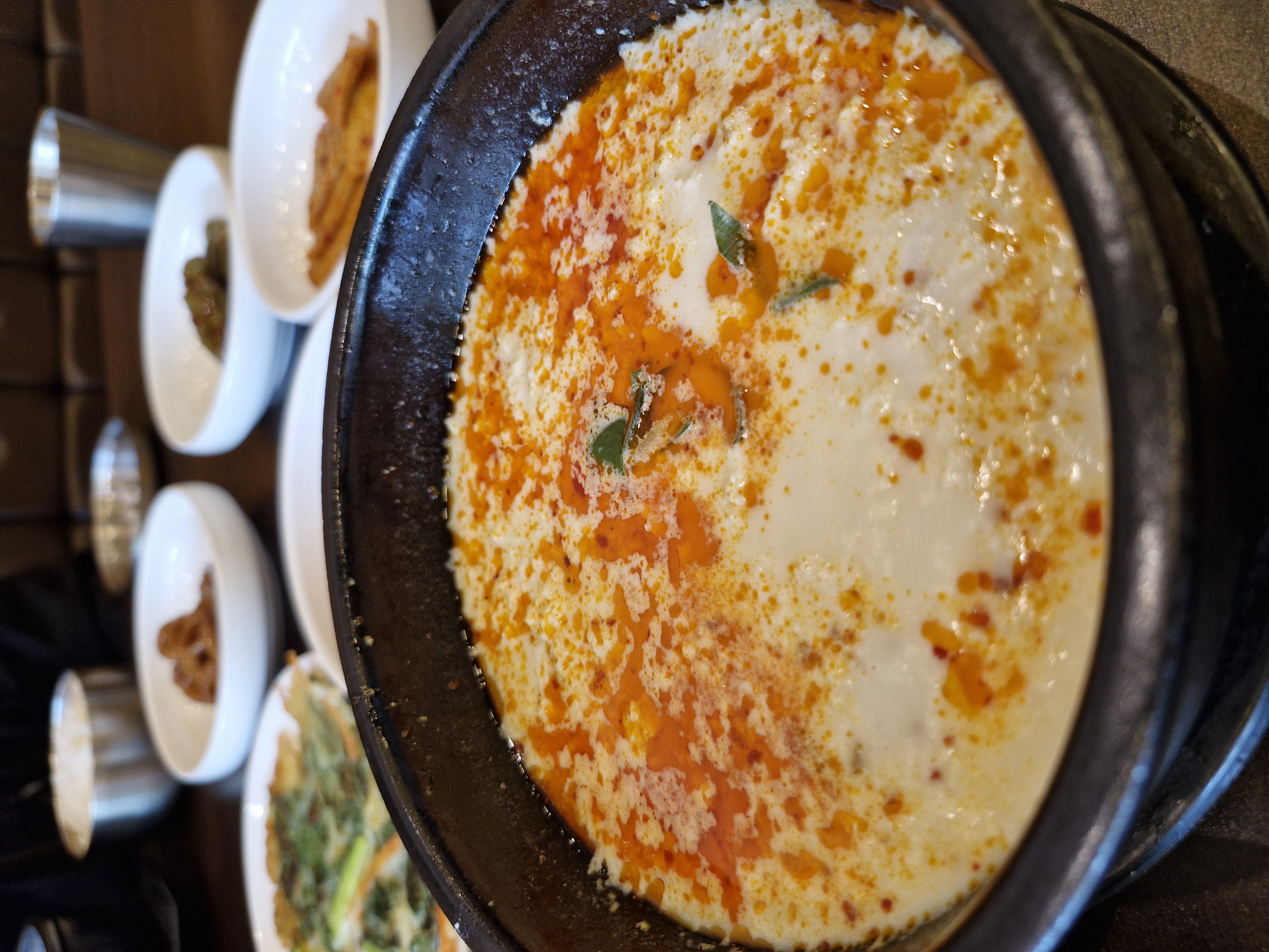 순두부 자체의 몽글몽글하고 진한 콩물맛에 청국장의 고소함이 곁들여지니까 최고였습니다