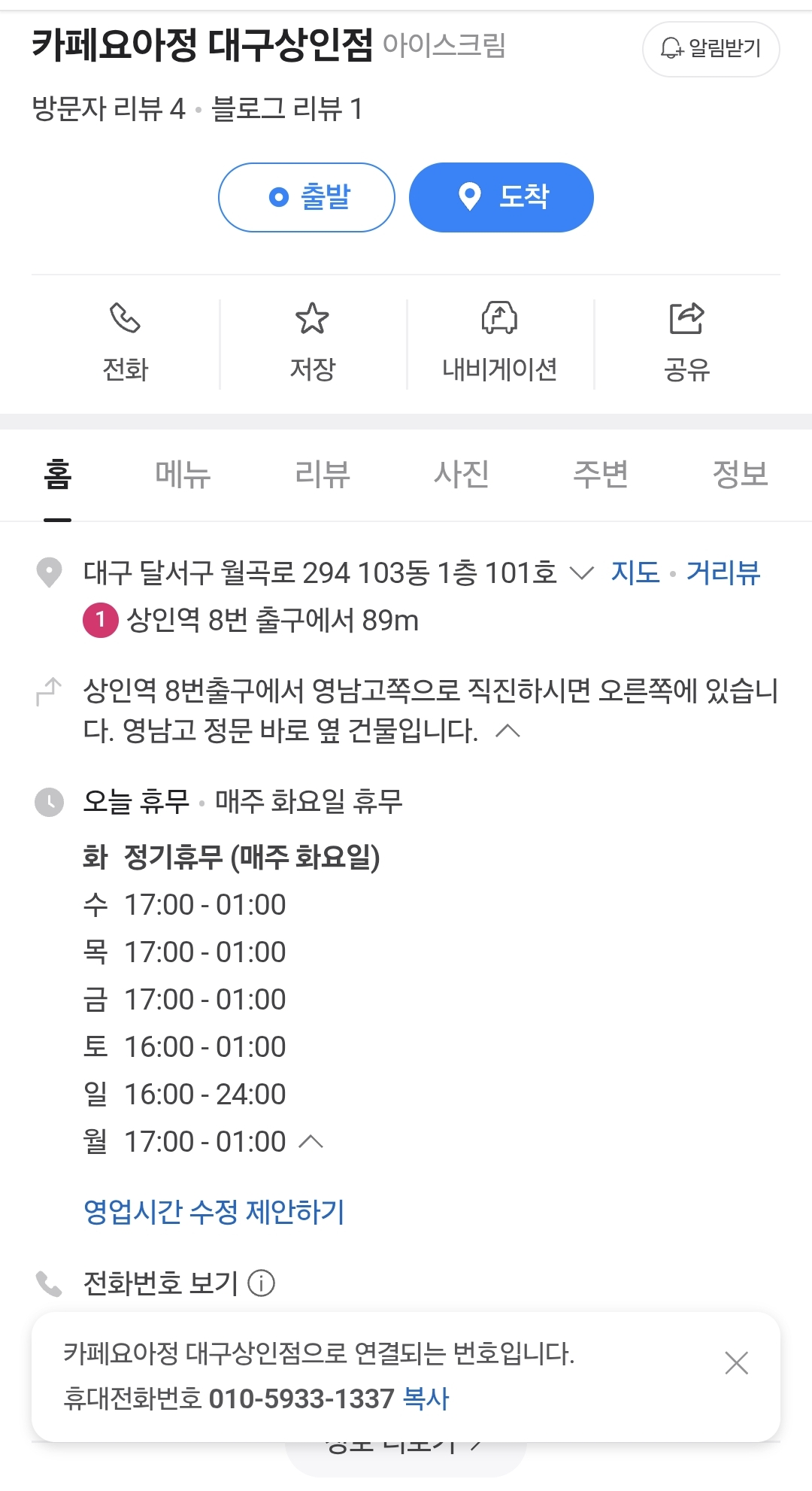 이날 저를 포함해 4명이 식사 후 디저트를 즐기러 대구 상인점 요아정을 방문했는데요