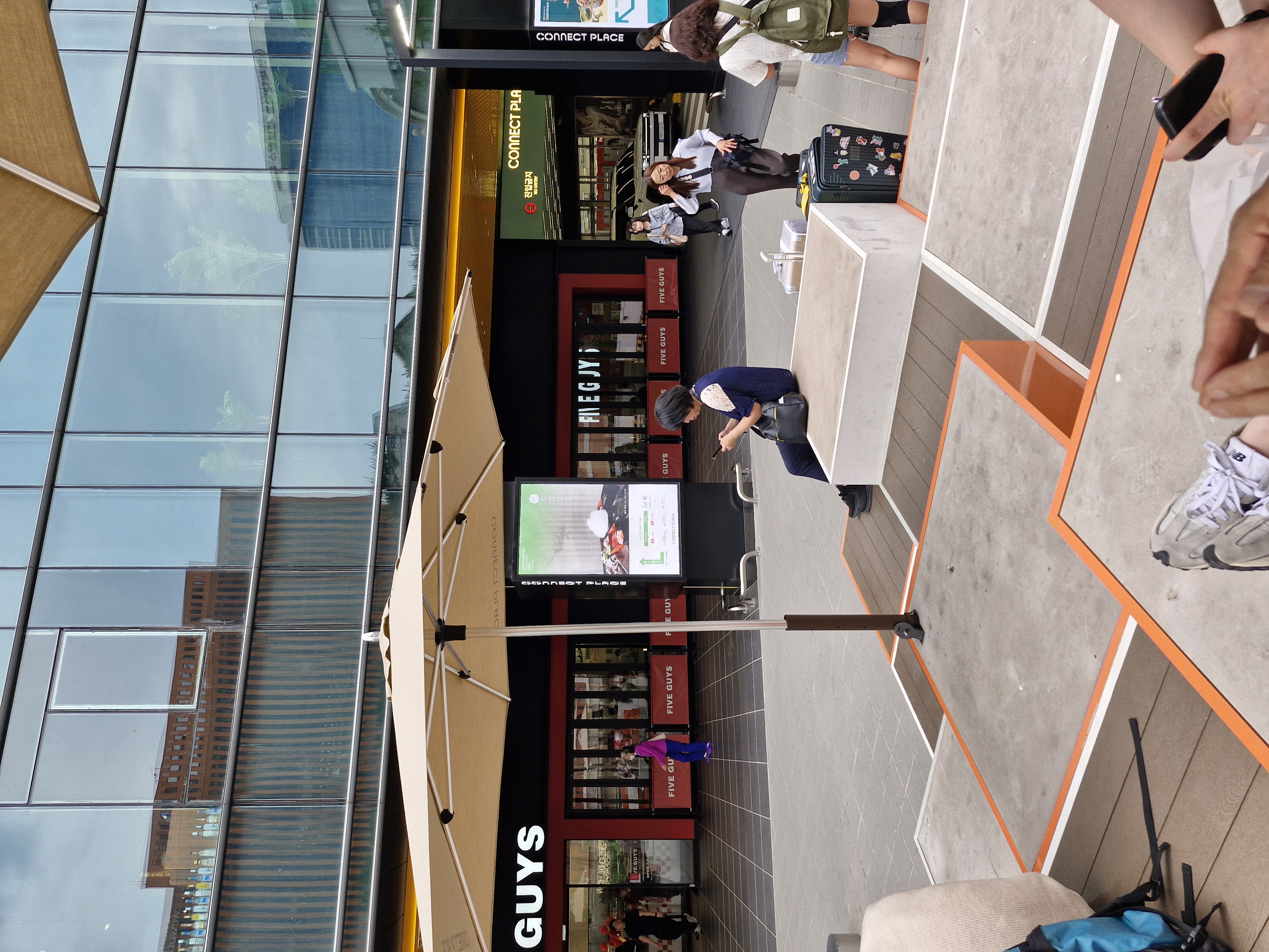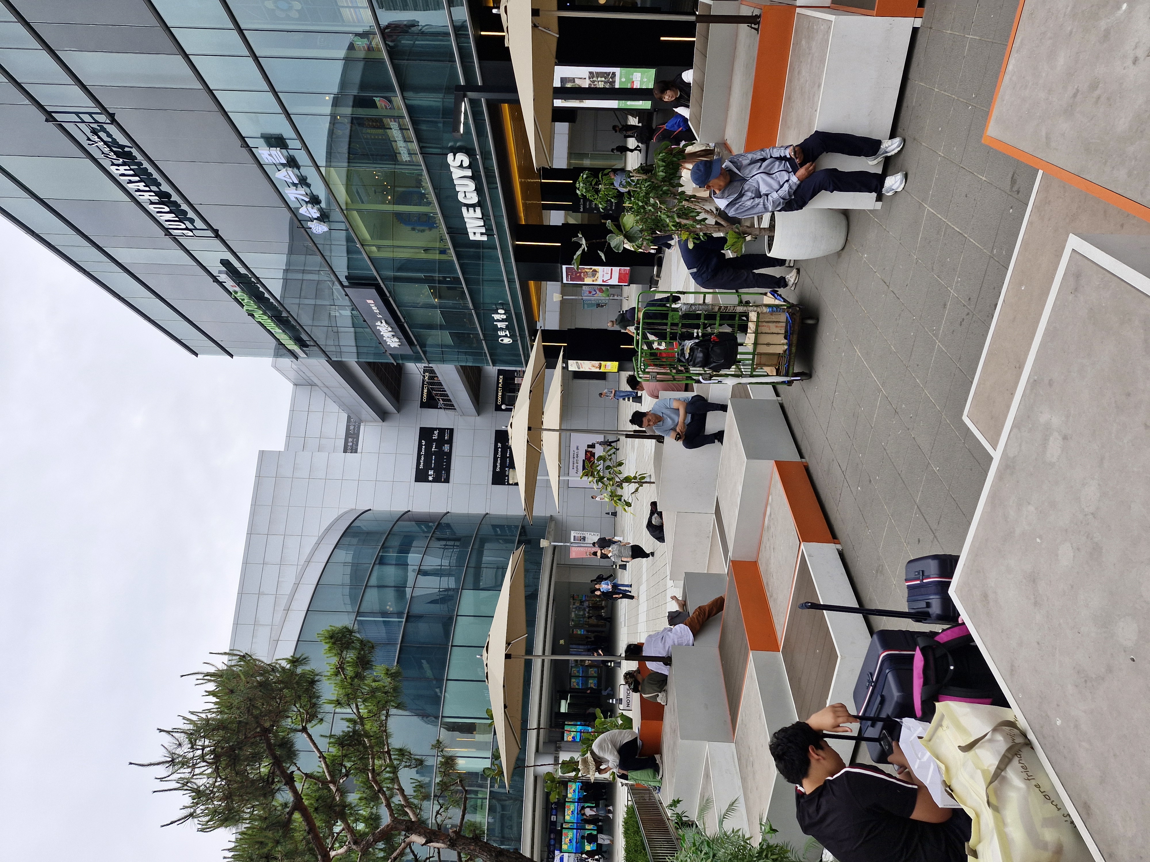 서울역 파이브가이즈 햄버거 가게 앞에 이렇게 앉아있을 수 있는 휴게공간이 있습니다
