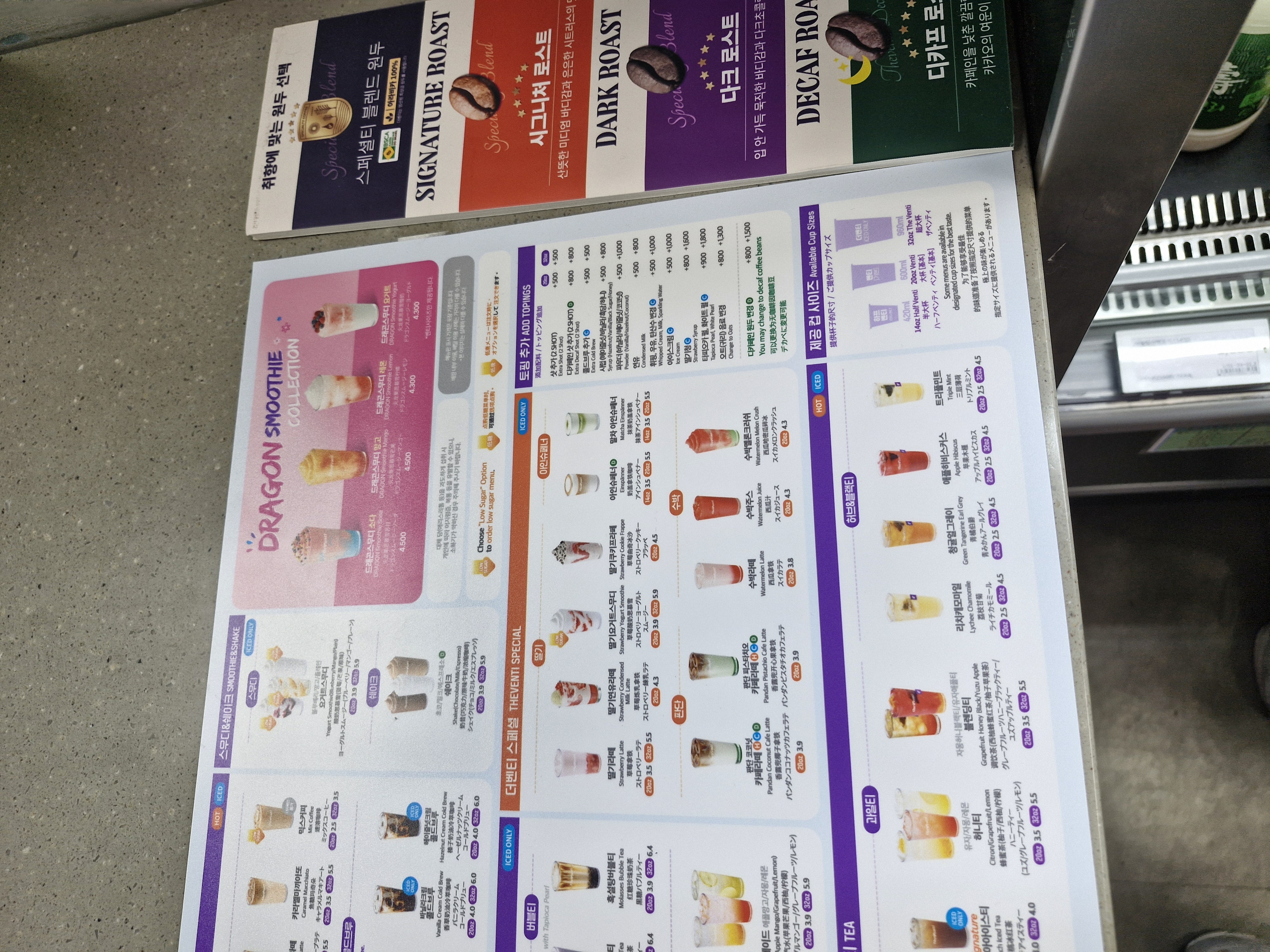 저렴한 비용으로 큰 용량의 음료를 즐길 수 있는 매장인데요