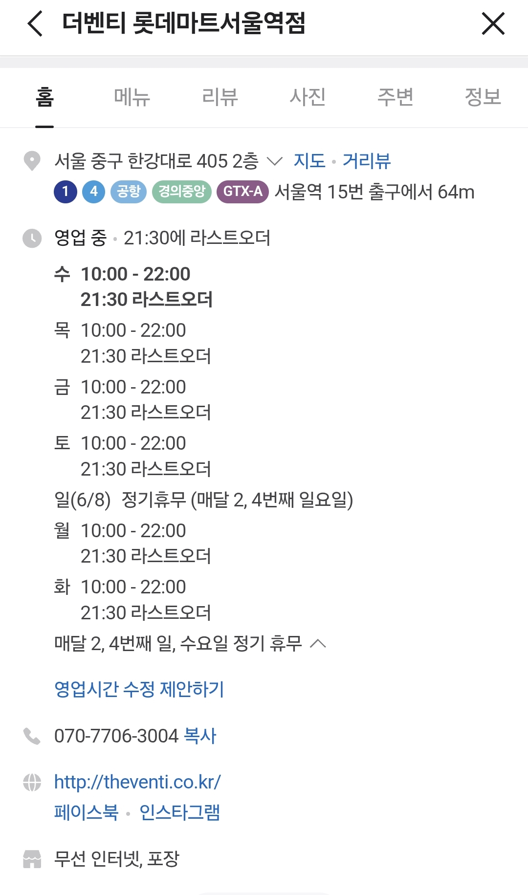 이러한 조건을 다 따져서 이용할 수 있는 서울역 롯데마트 내 카페는 딱 한 곳, '더벤티'가 있습니다