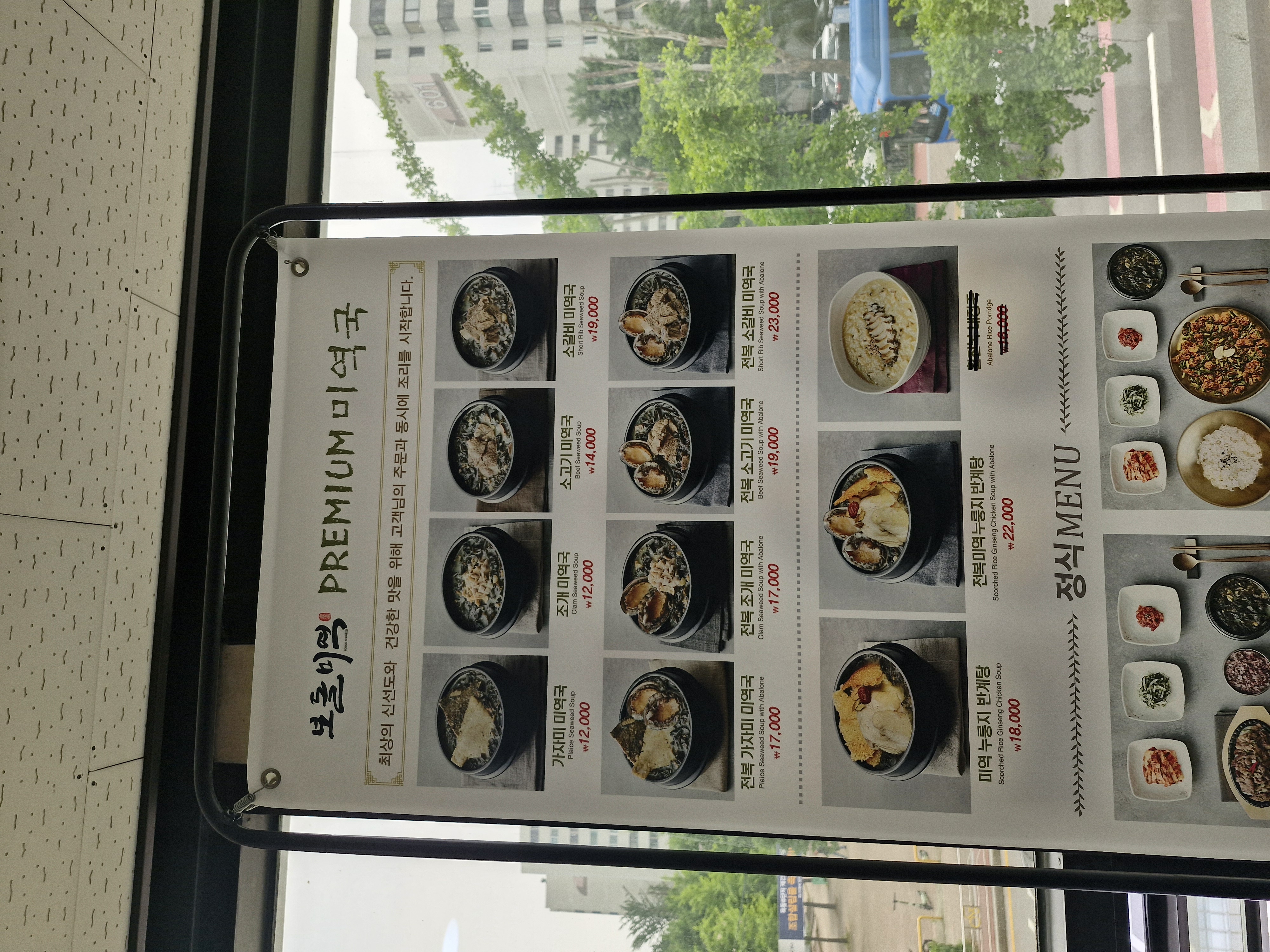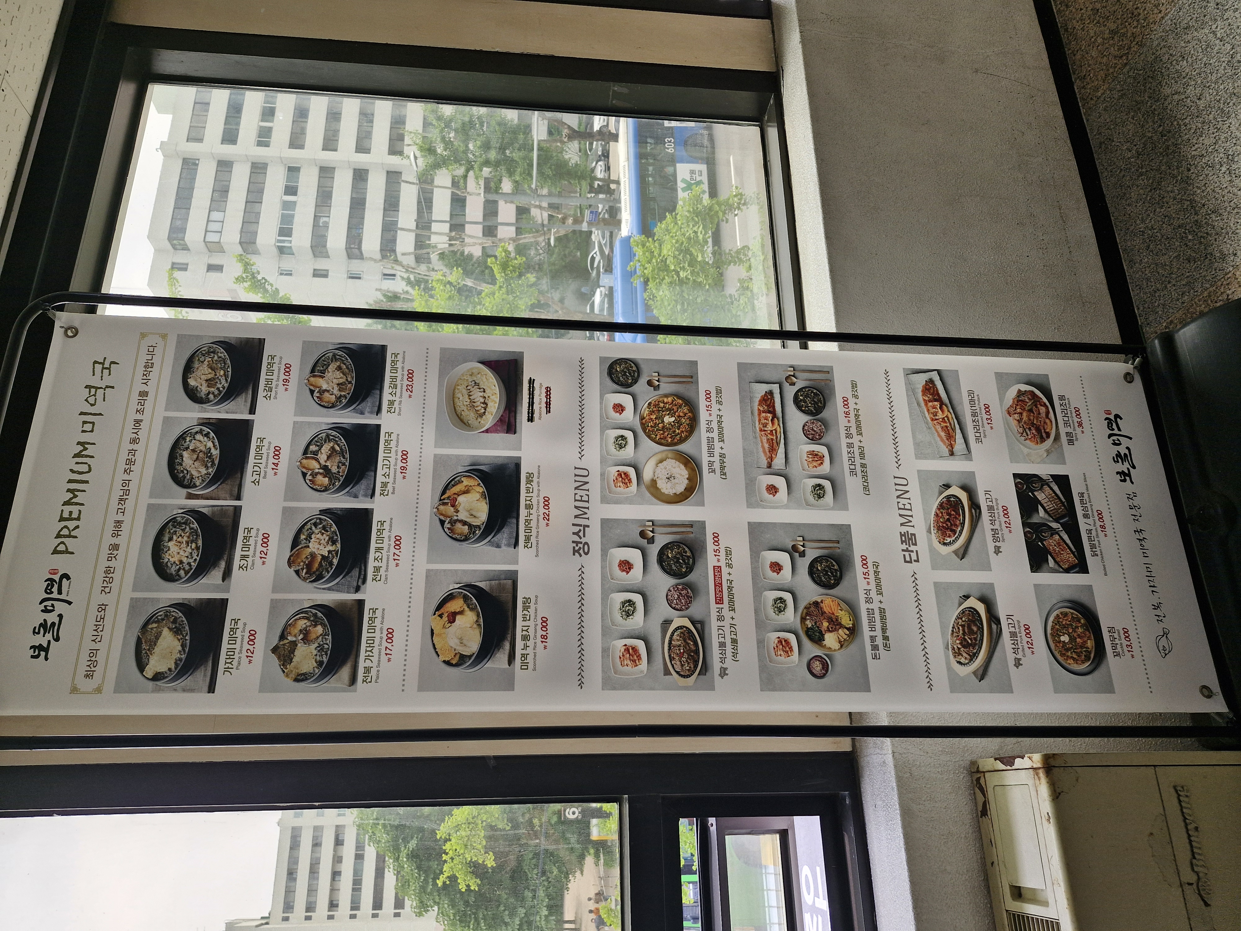 상가 바깥에도 어르신 모시고 가기 좋은 식당 보돌미역의 메뉴가 있으니 미리 확인하셔도 되고요