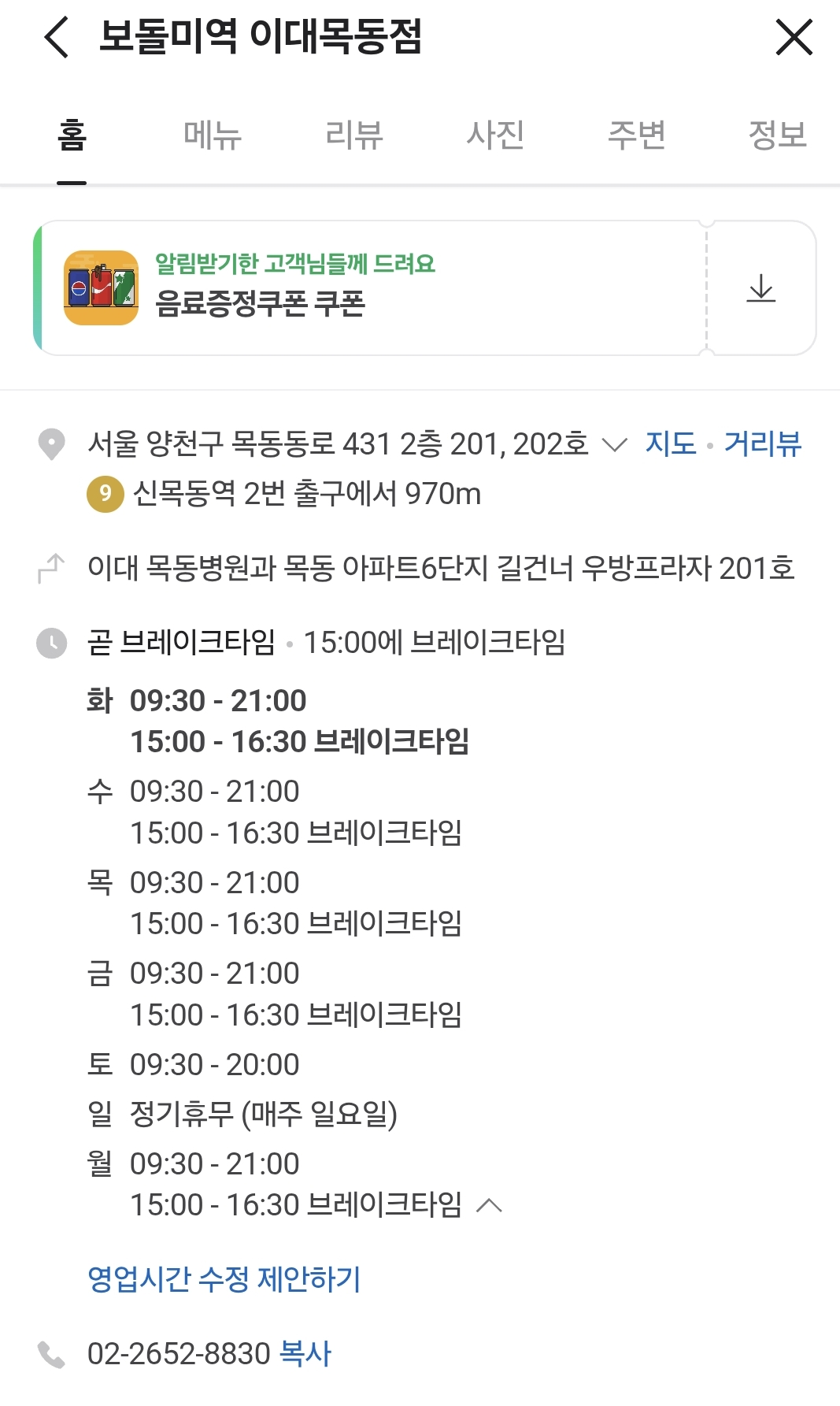 보돌미역 이대목동점은 이대목동병원에서 도보 3분 정도 거리입니다