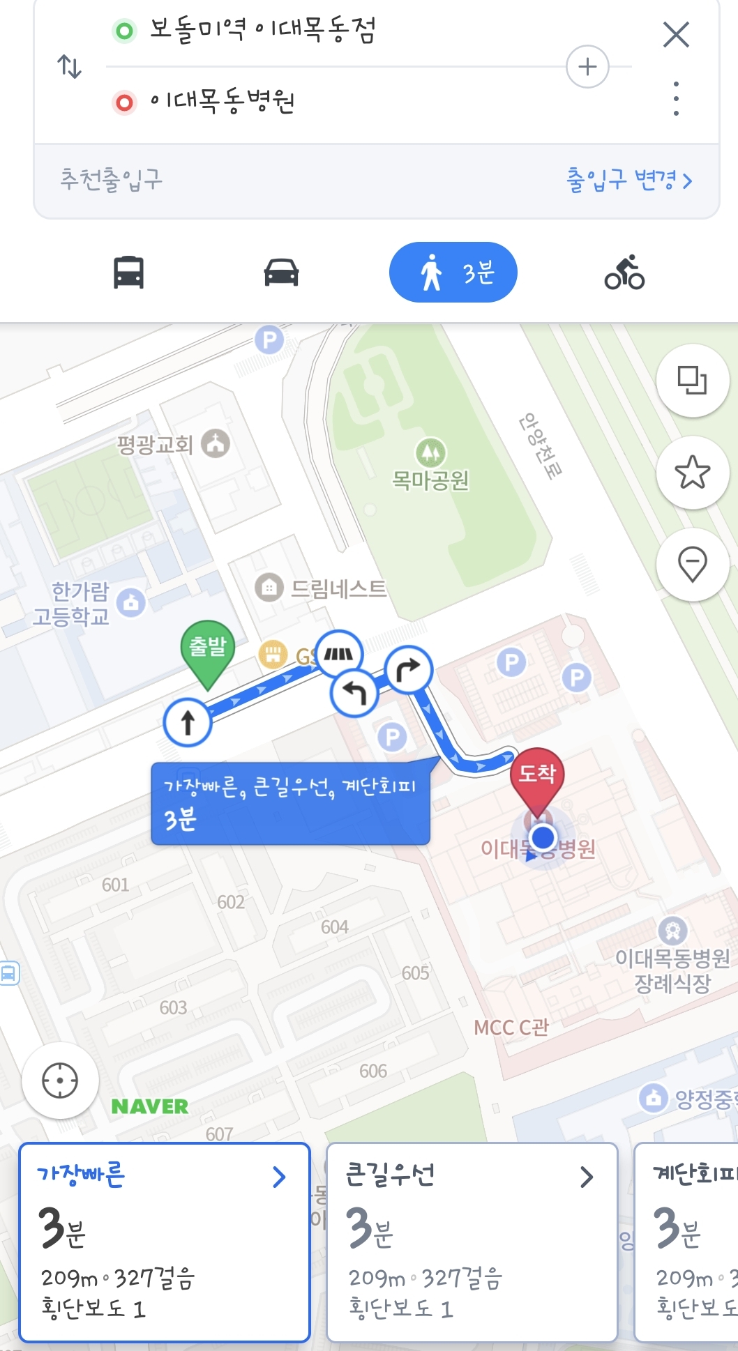 이대목동병원 근처 맛집 '보돌미역' 위치, 거리, 경로