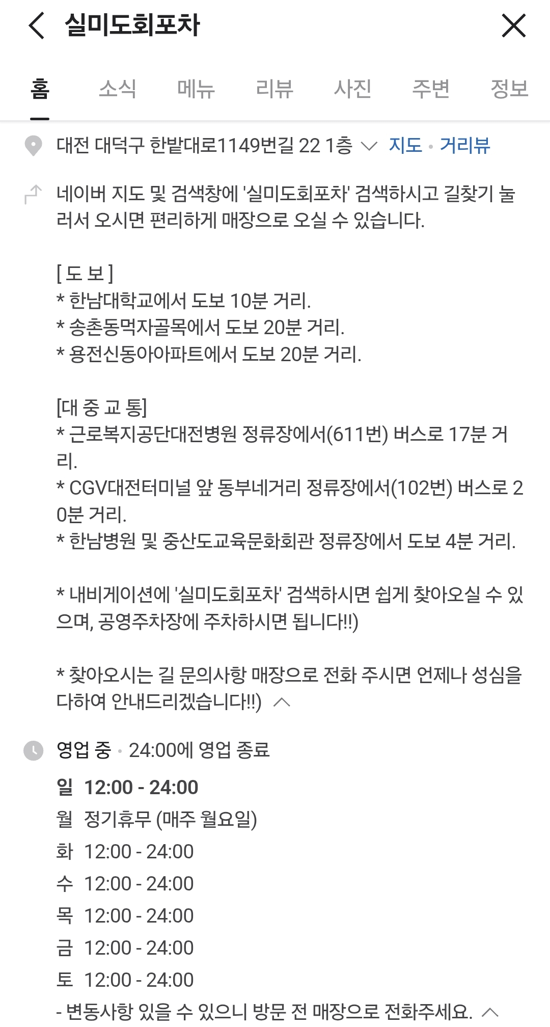 대전 중리동 모텔촌에 머무시는 분들께 실미도회포차 추천해 드립니다!