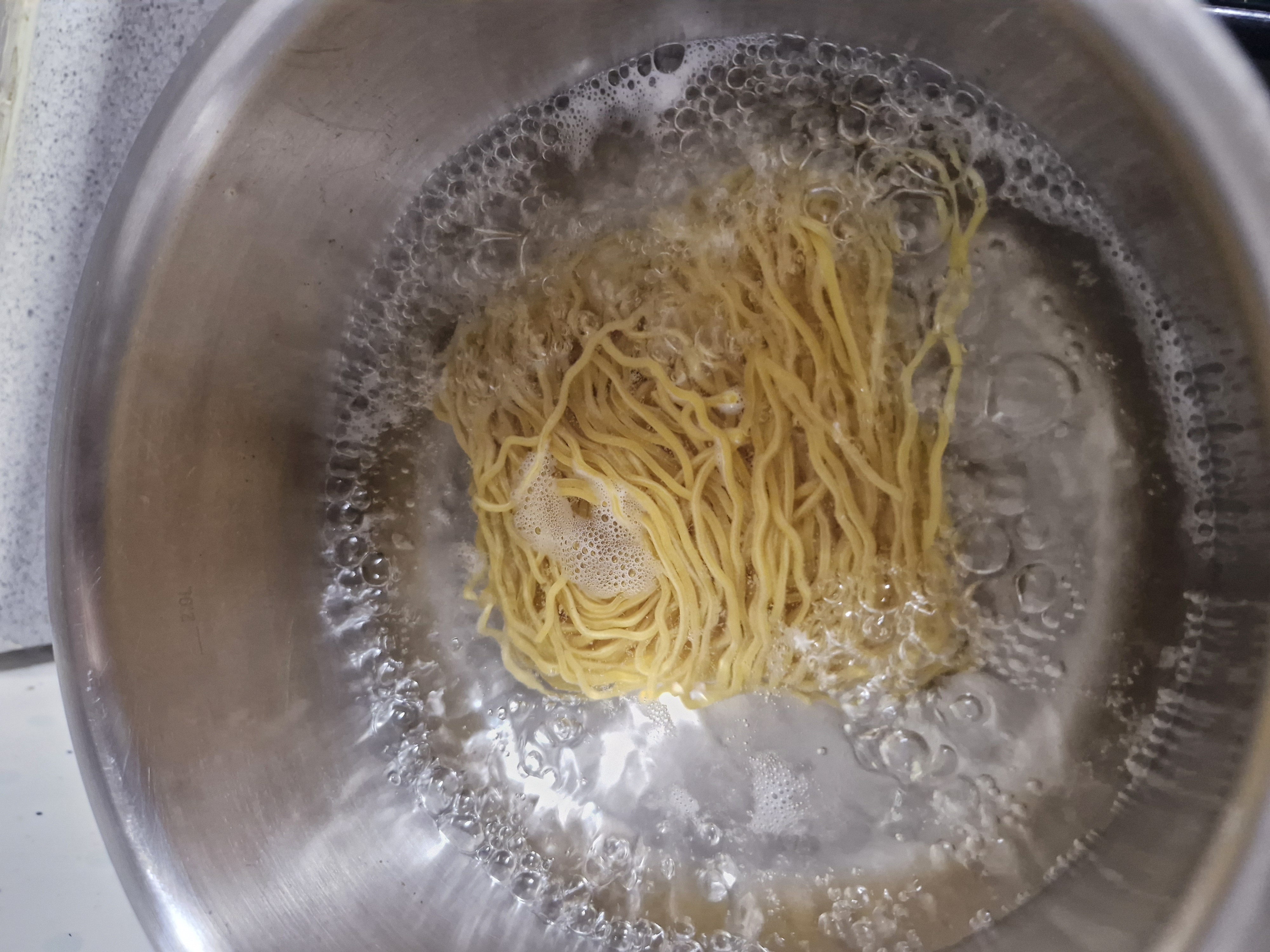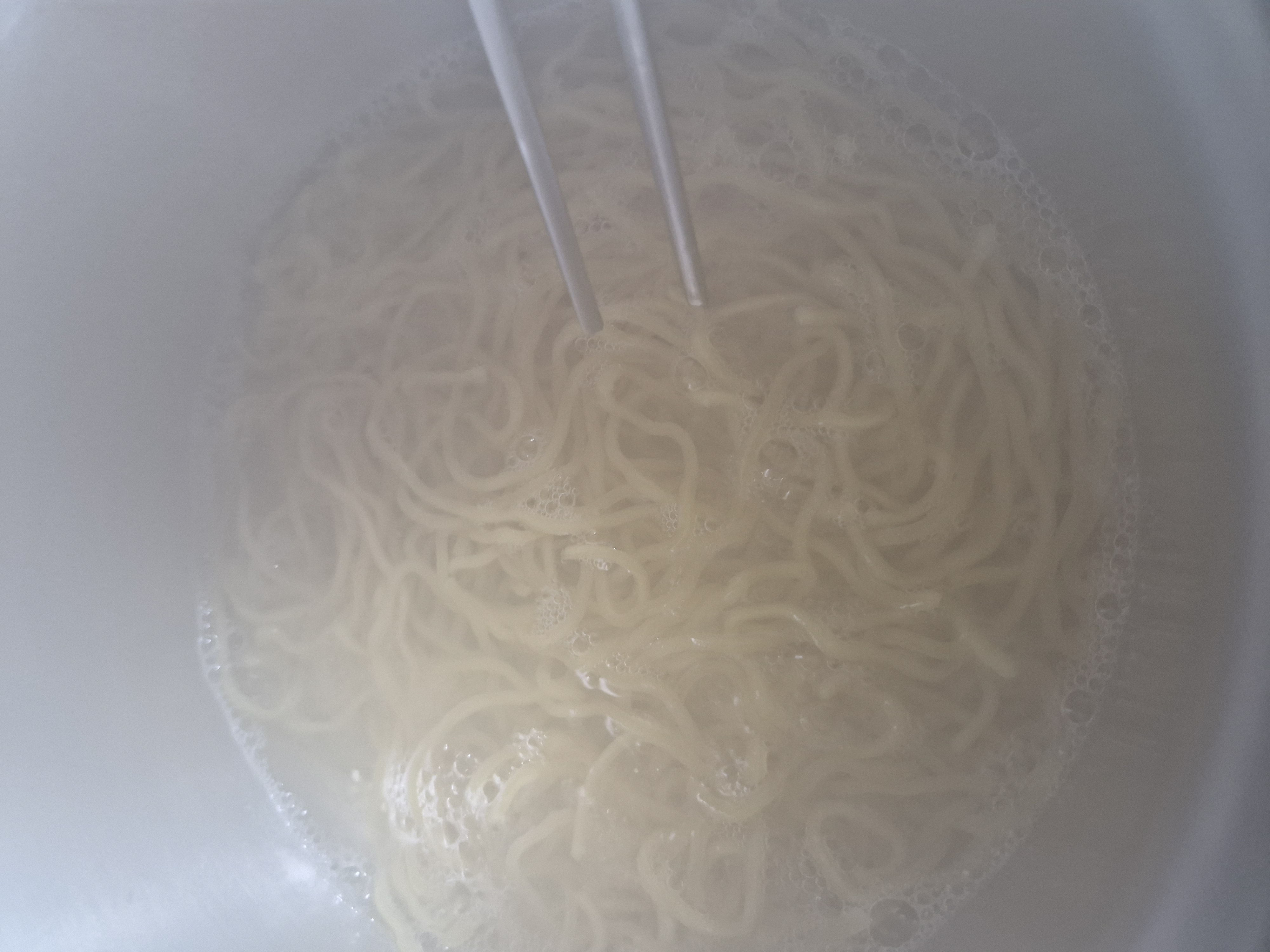 젓가락으로 면을 잘 풀어준 후 2분 30초를 더 끓입니다