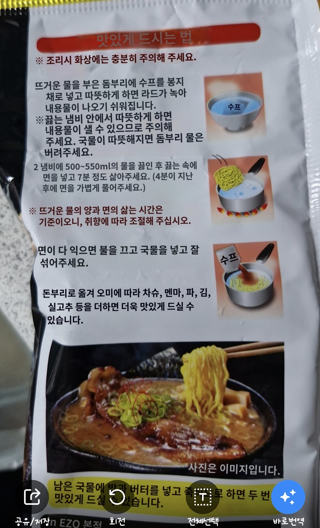 대충 끓이려다가 한국 라멘과 방법이 꽤 다른 것 같아서 파파고 번역기를 돌렸습니다