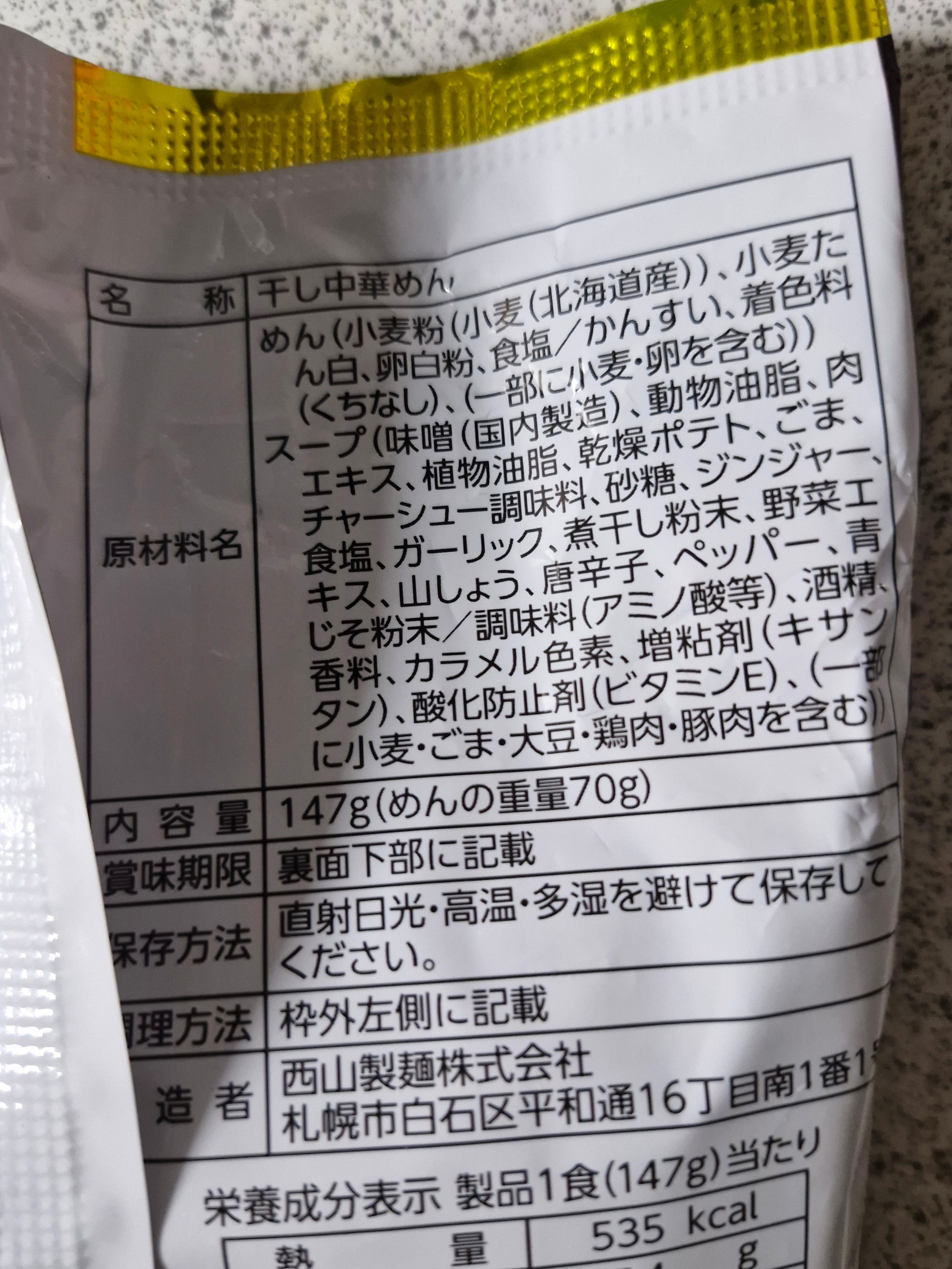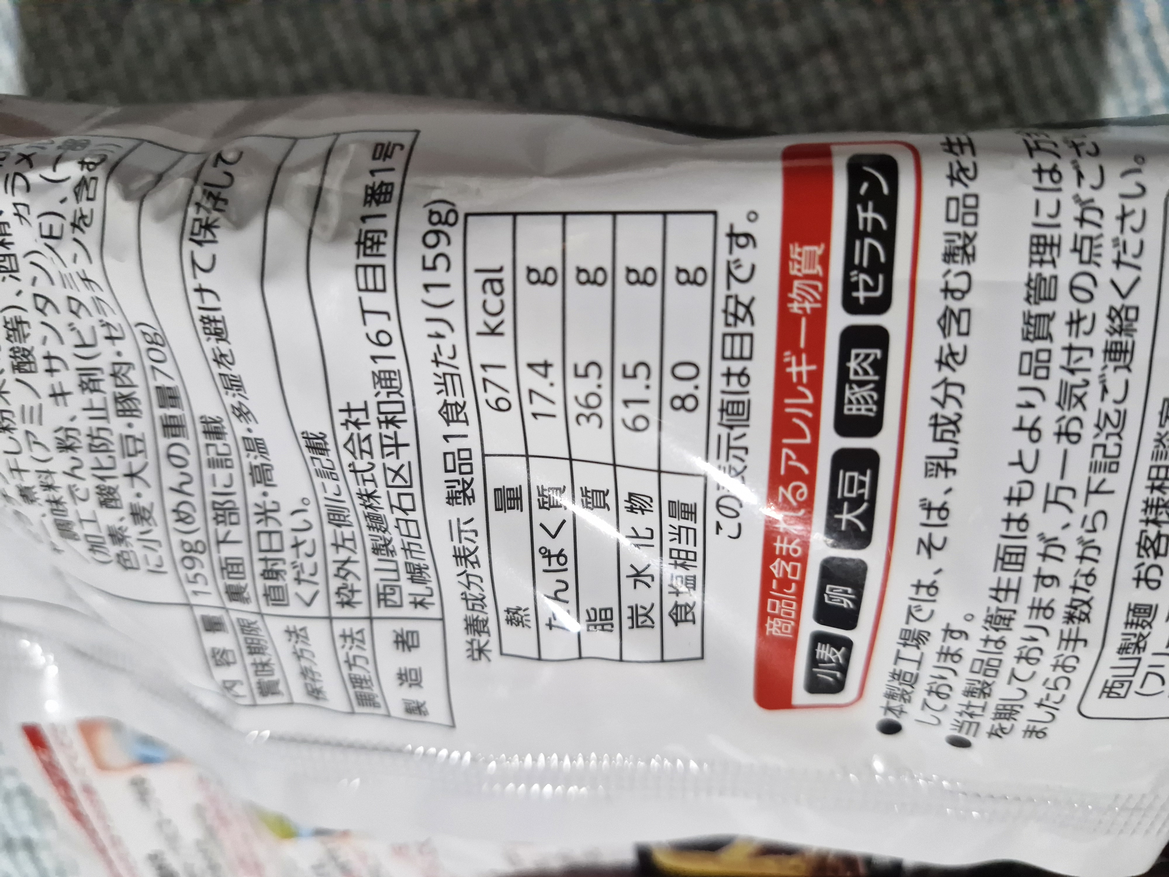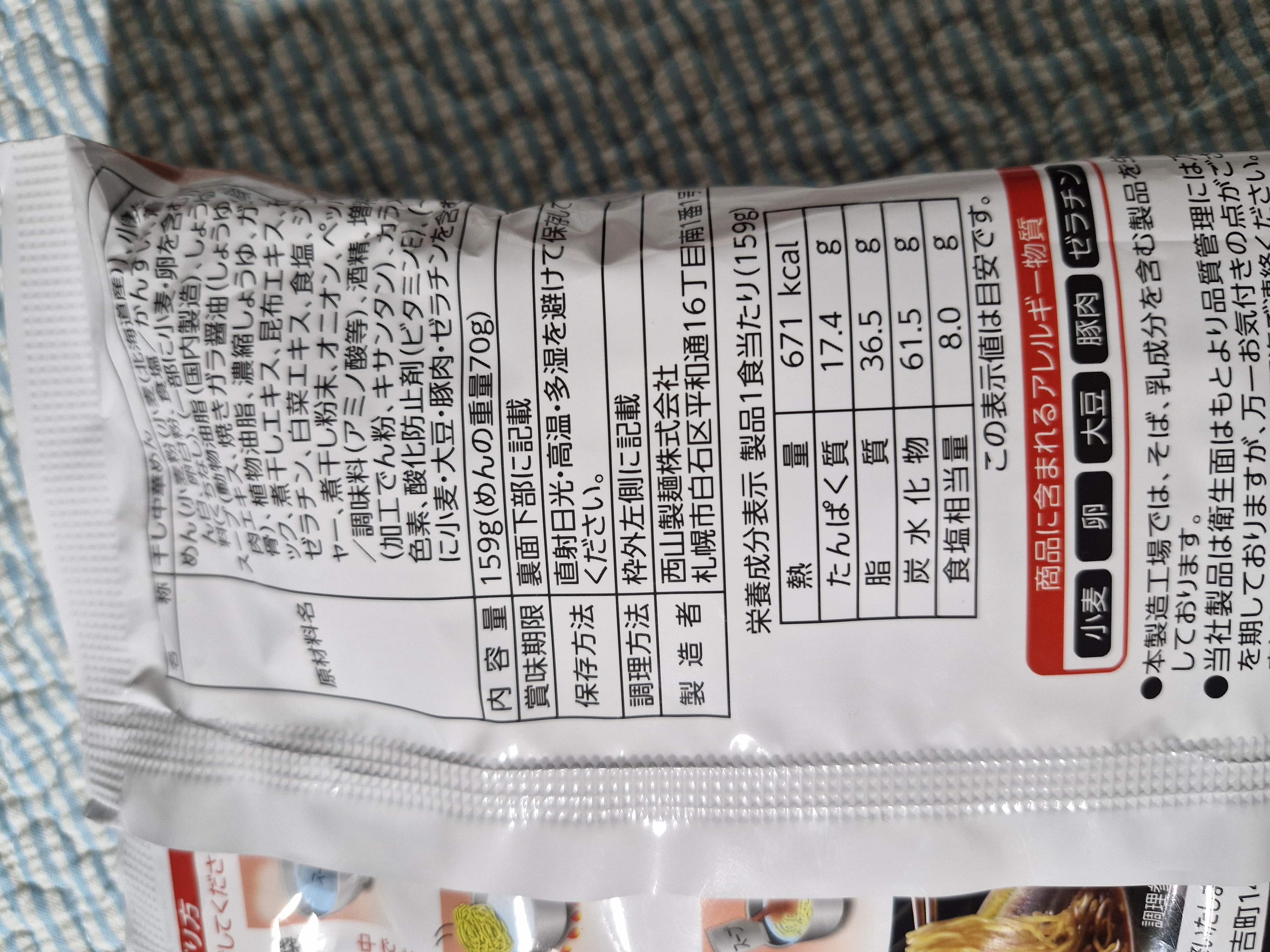 오타루 쇼다이 라멘의 인스턴트 버전은 671kcal로 아주 높은 열량을 자랑하네요