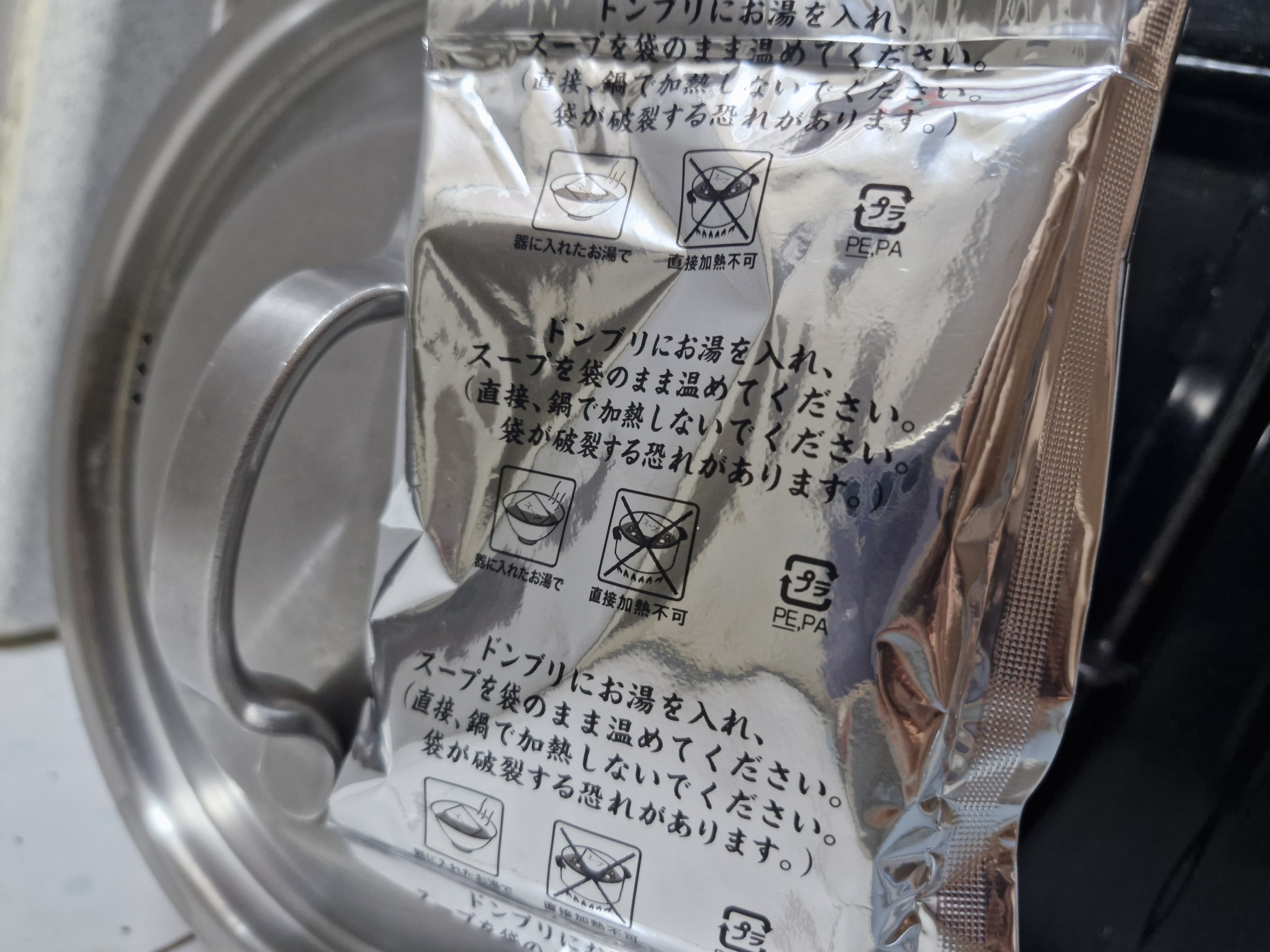 팔팔 끓고 있는 물이 아닌, 뜨거운 물에 스프를 넣고 따뜻해질 때까지 방치하면 됩니다