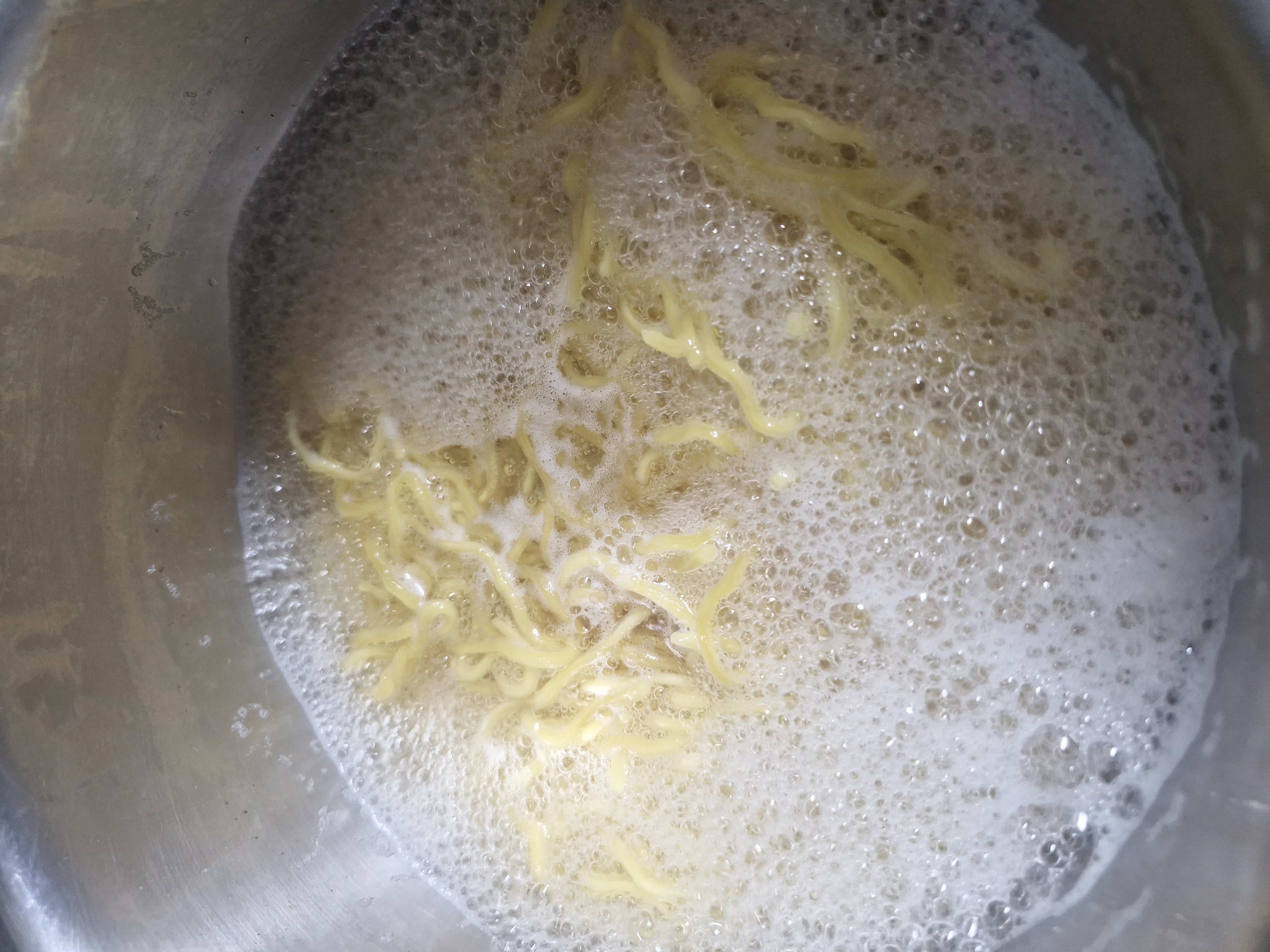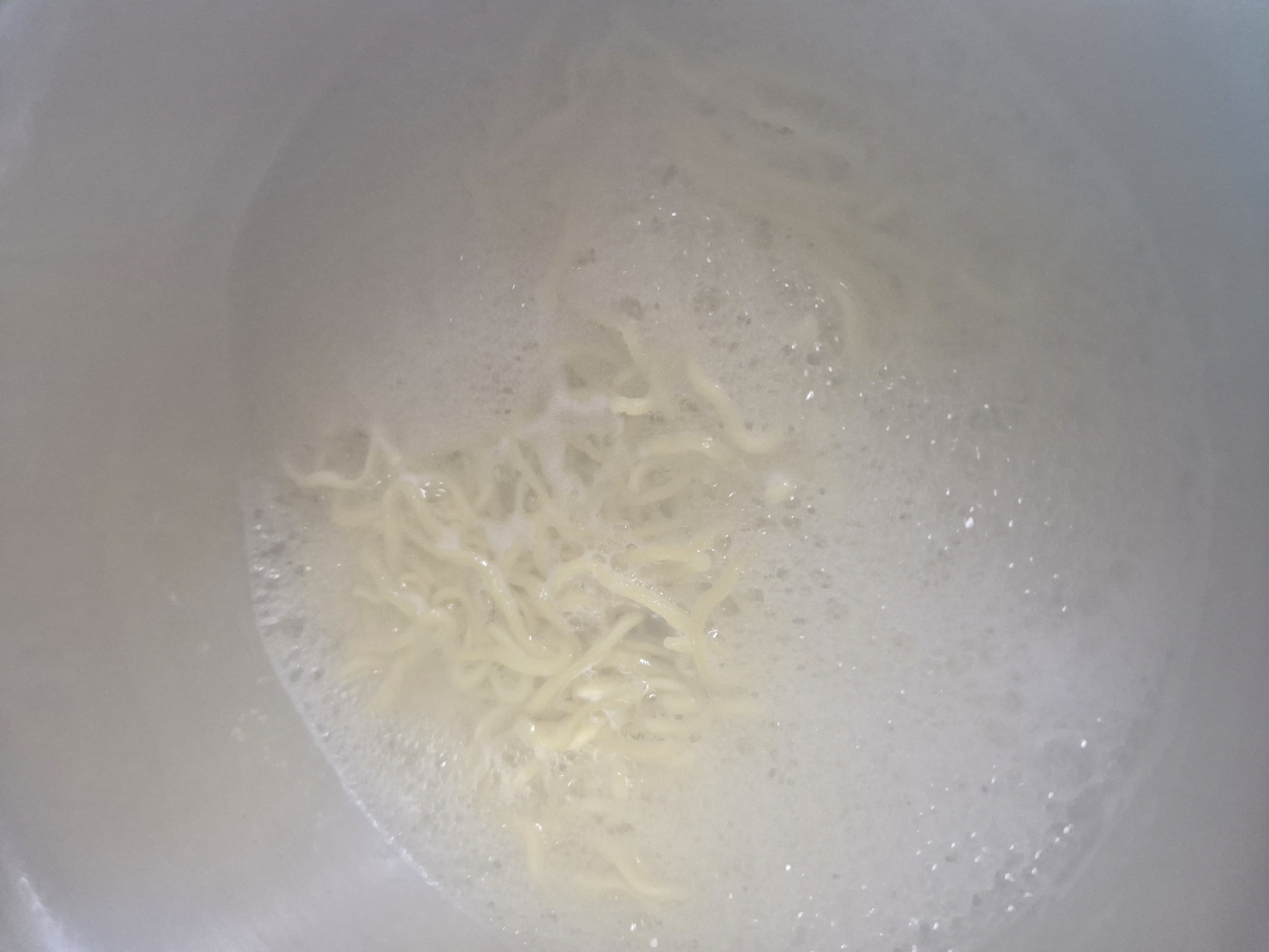 젓가락으로 면을 잘 풀어준 후 2분 30초를 더 끓입니다