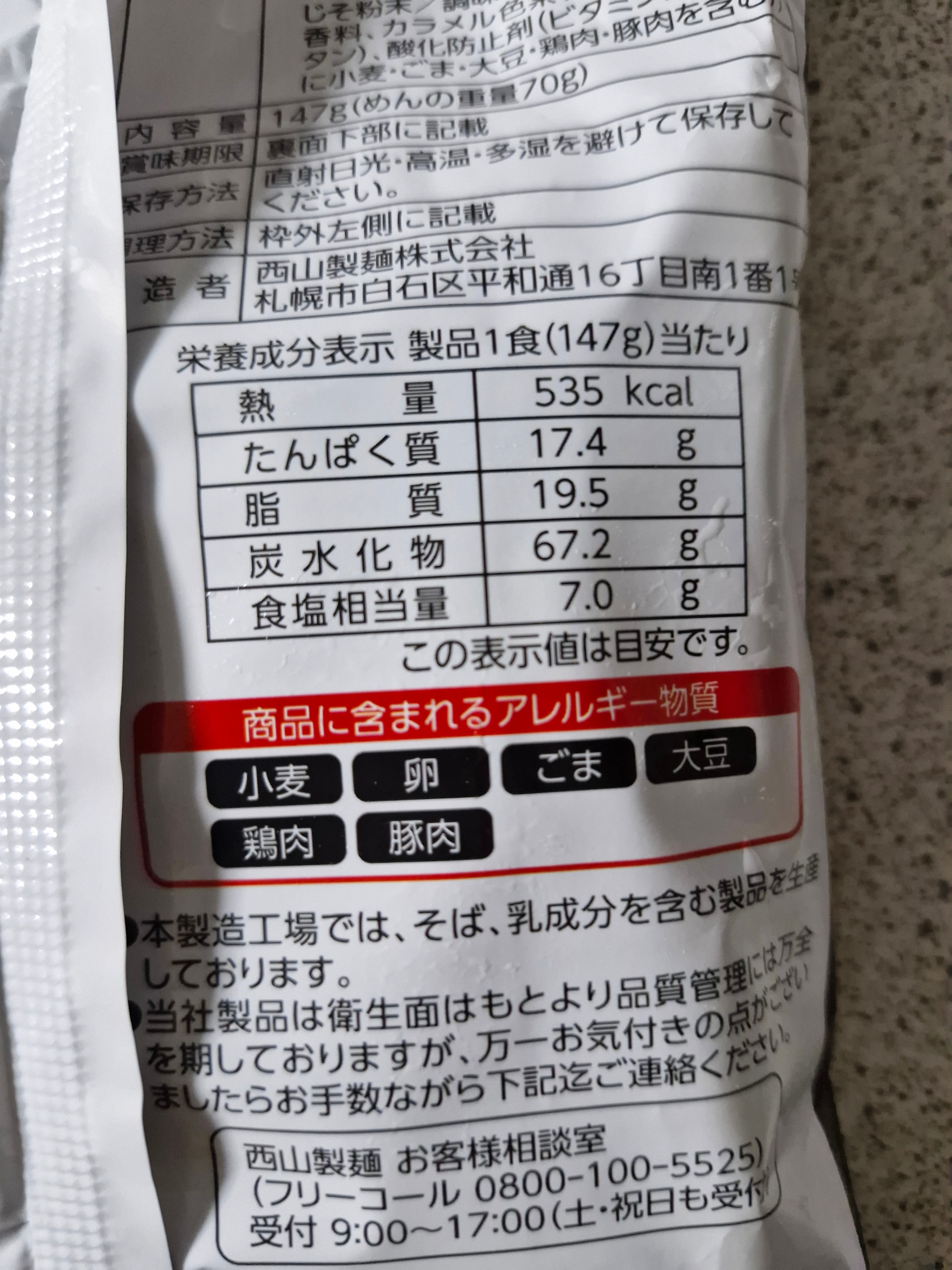 오타루 쇼다이 라멘의 인스턴트 버전은 671kcal로 아주 높은 열량을 자랑하네요