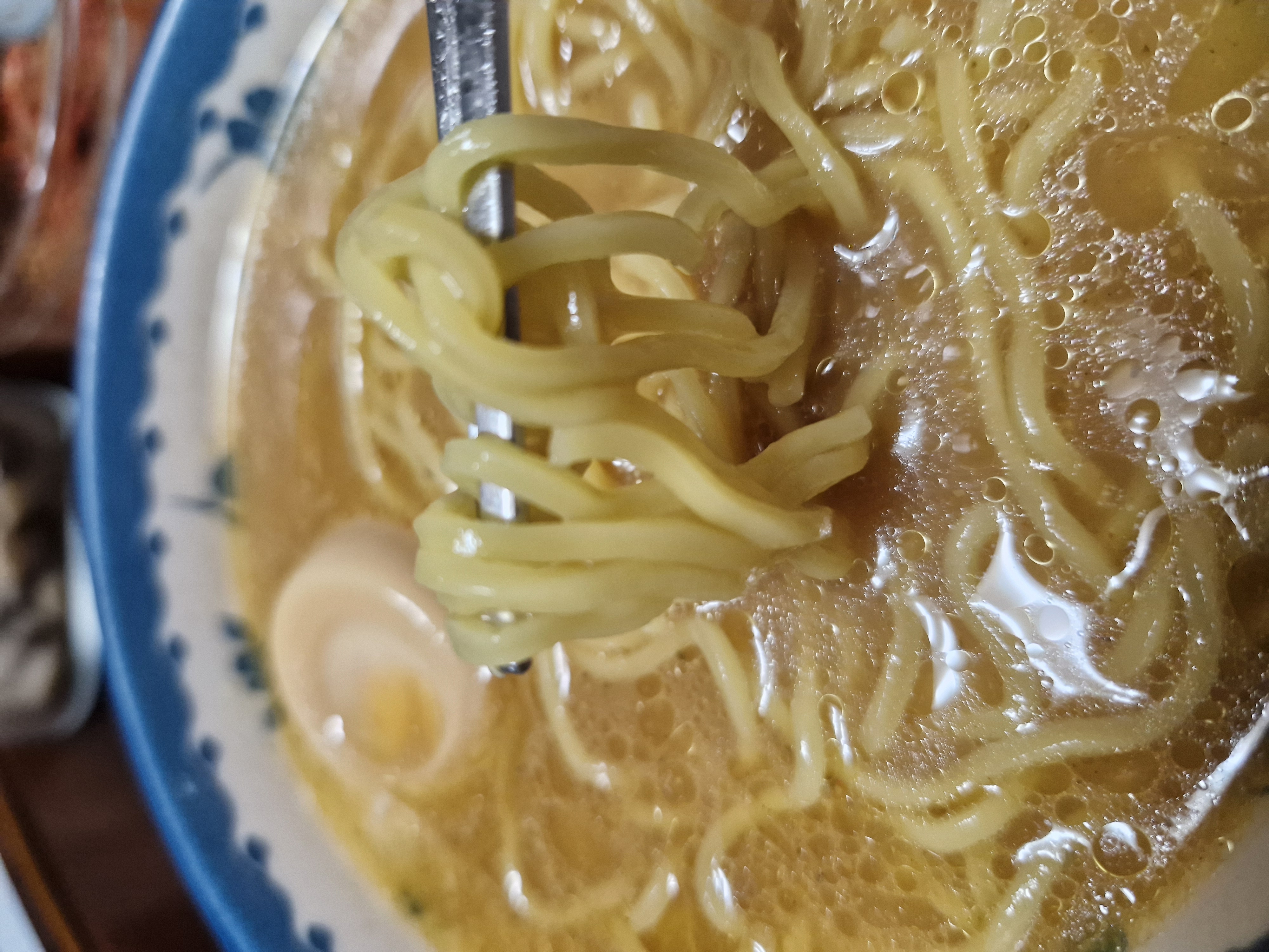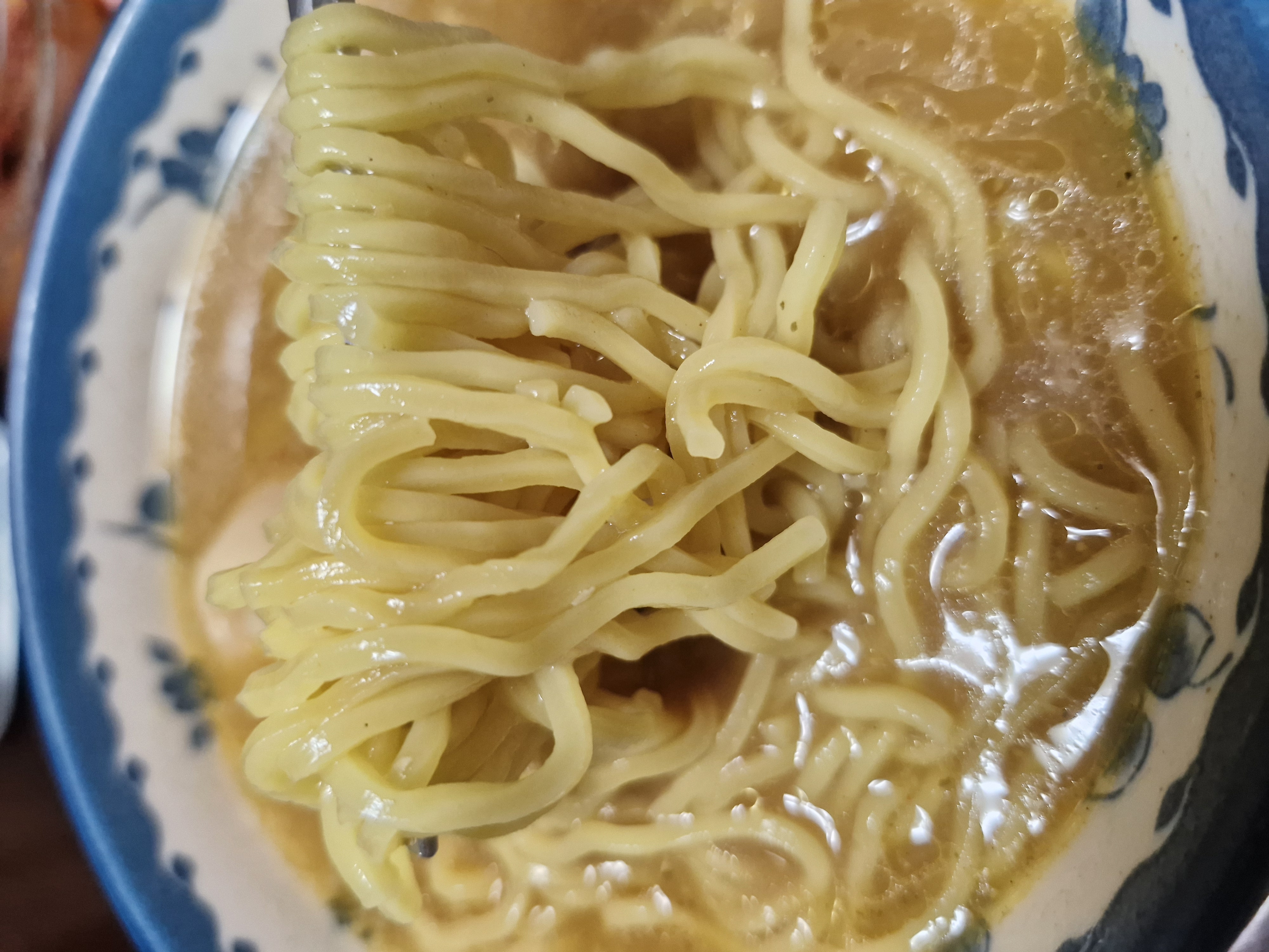 7분 가까이 푹 끓여도 일본라멘 특징 답게 꼬들한 느낌이 잘 살아있습니다