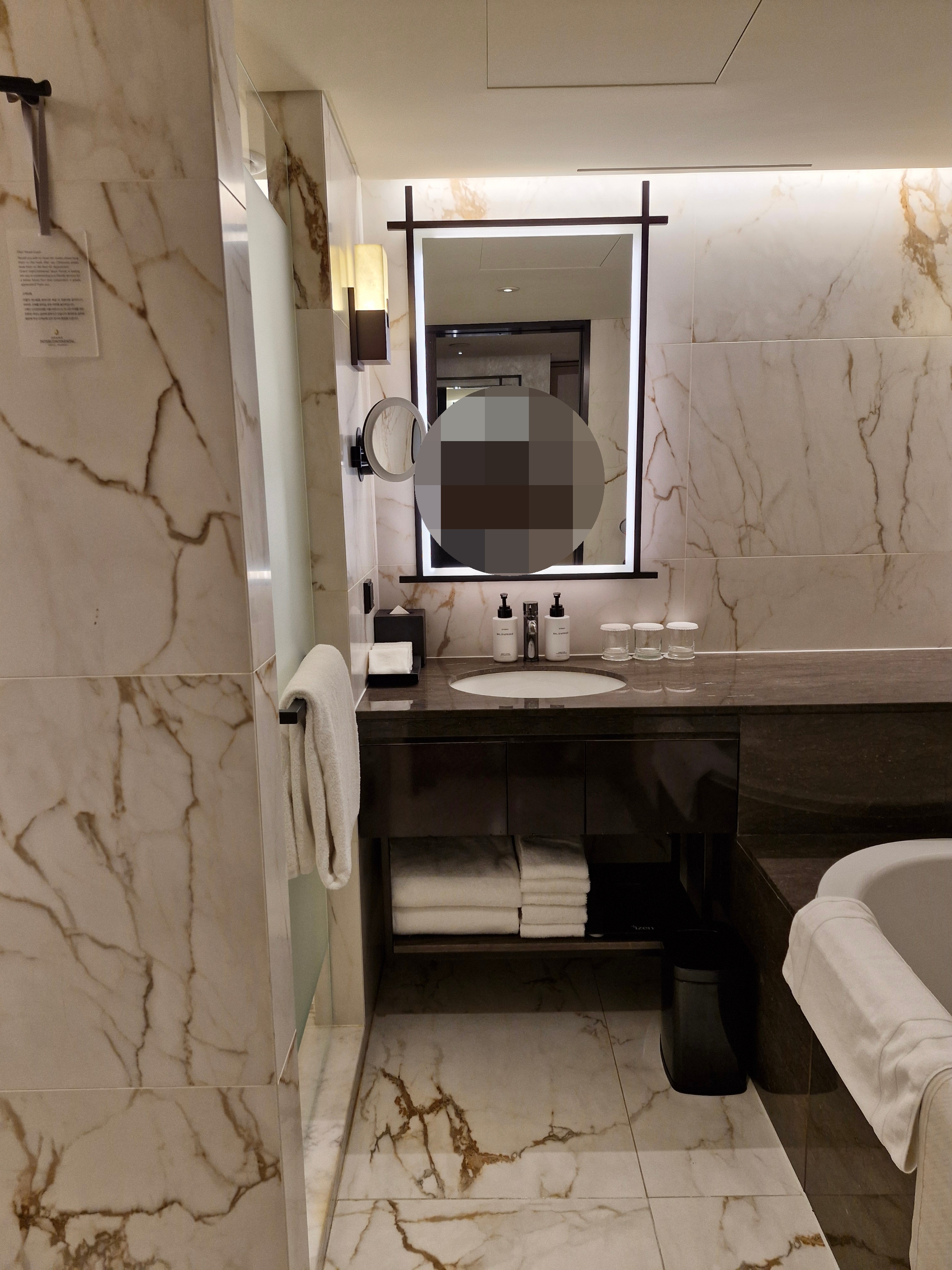 파르나스 서울 호텔 욕실 서랍에 헤어드라이어 등이 있습니다