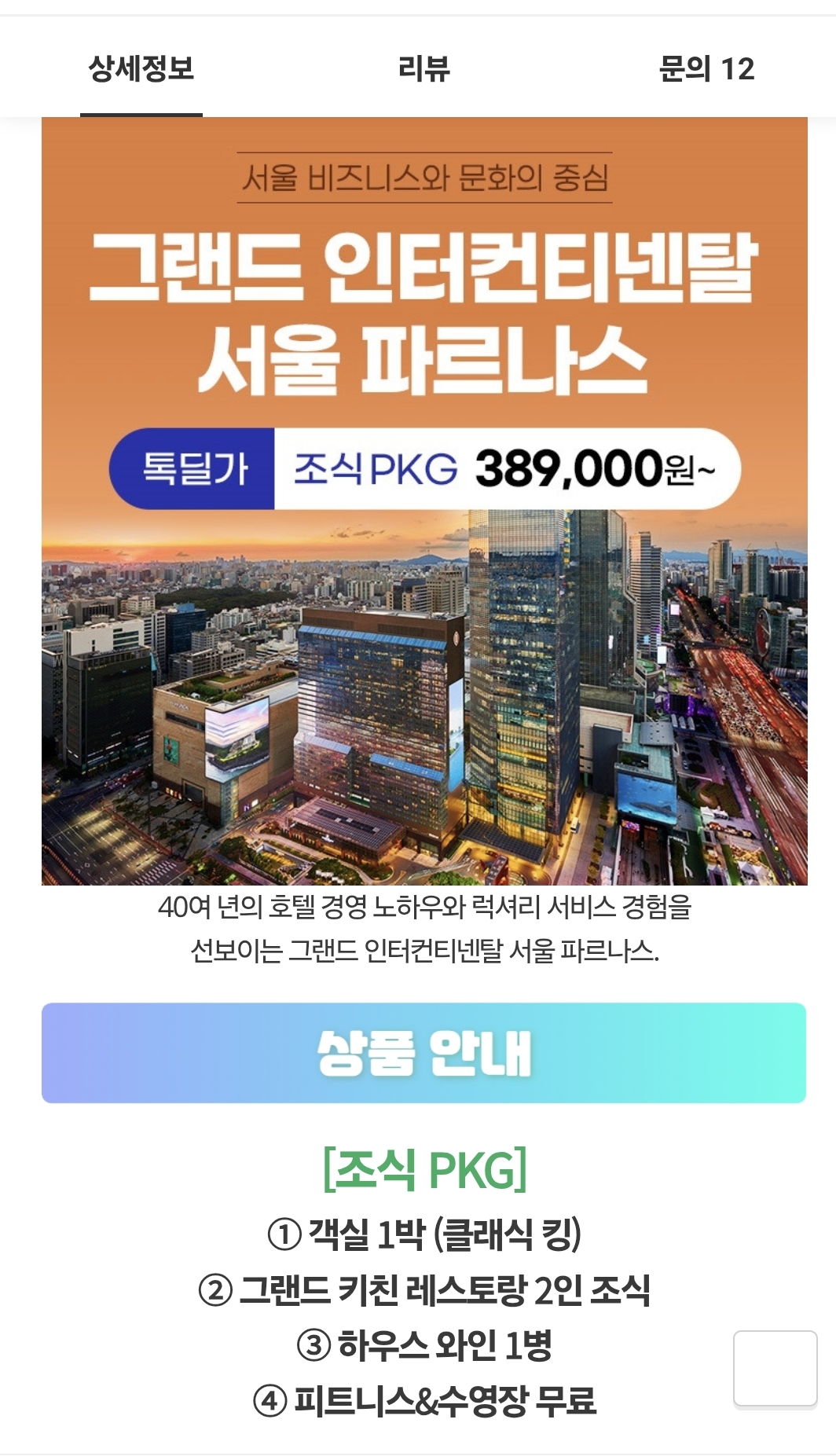 강남 호캉스, 코엑스 '서울 파르나스 호텔' 톡딜 클래식킹 가격, 옵션