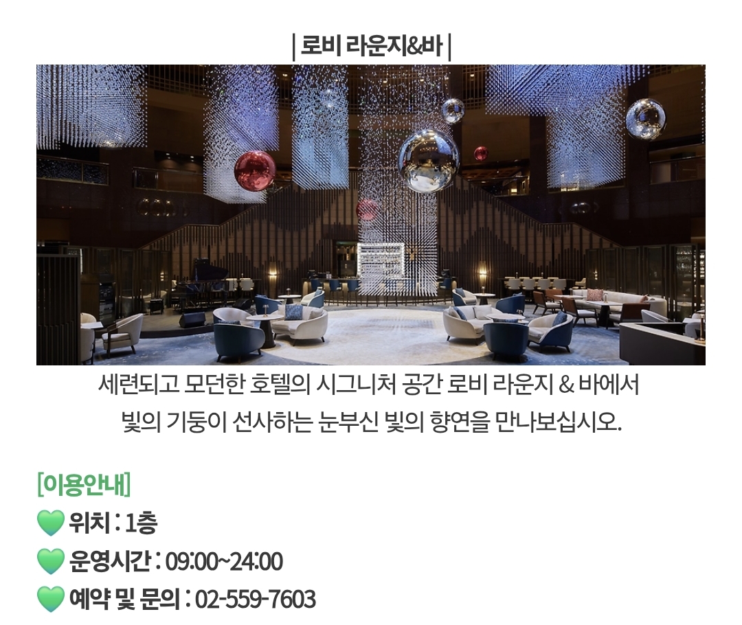 파르나스 호텔은 대형 호텔인 만큼 관련 부대시설도 다양합니다