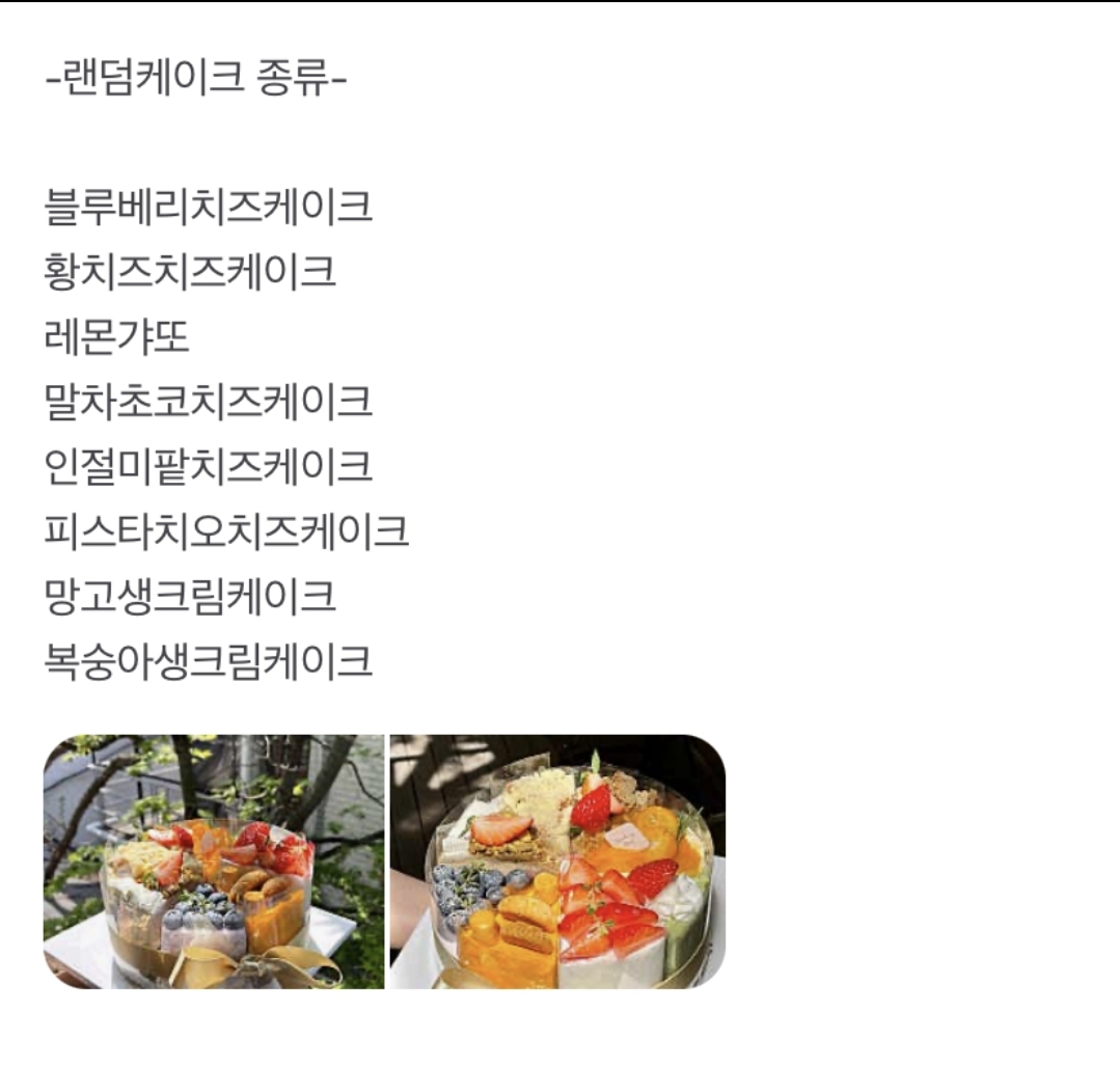 그래서 모듬케이크 8조각의 맛을 모두 골라놓았더라도, 수령 날짜 가까워질 때쯤 연락와서 맛을 다시 선택하라고 연락할 수도 있습니다