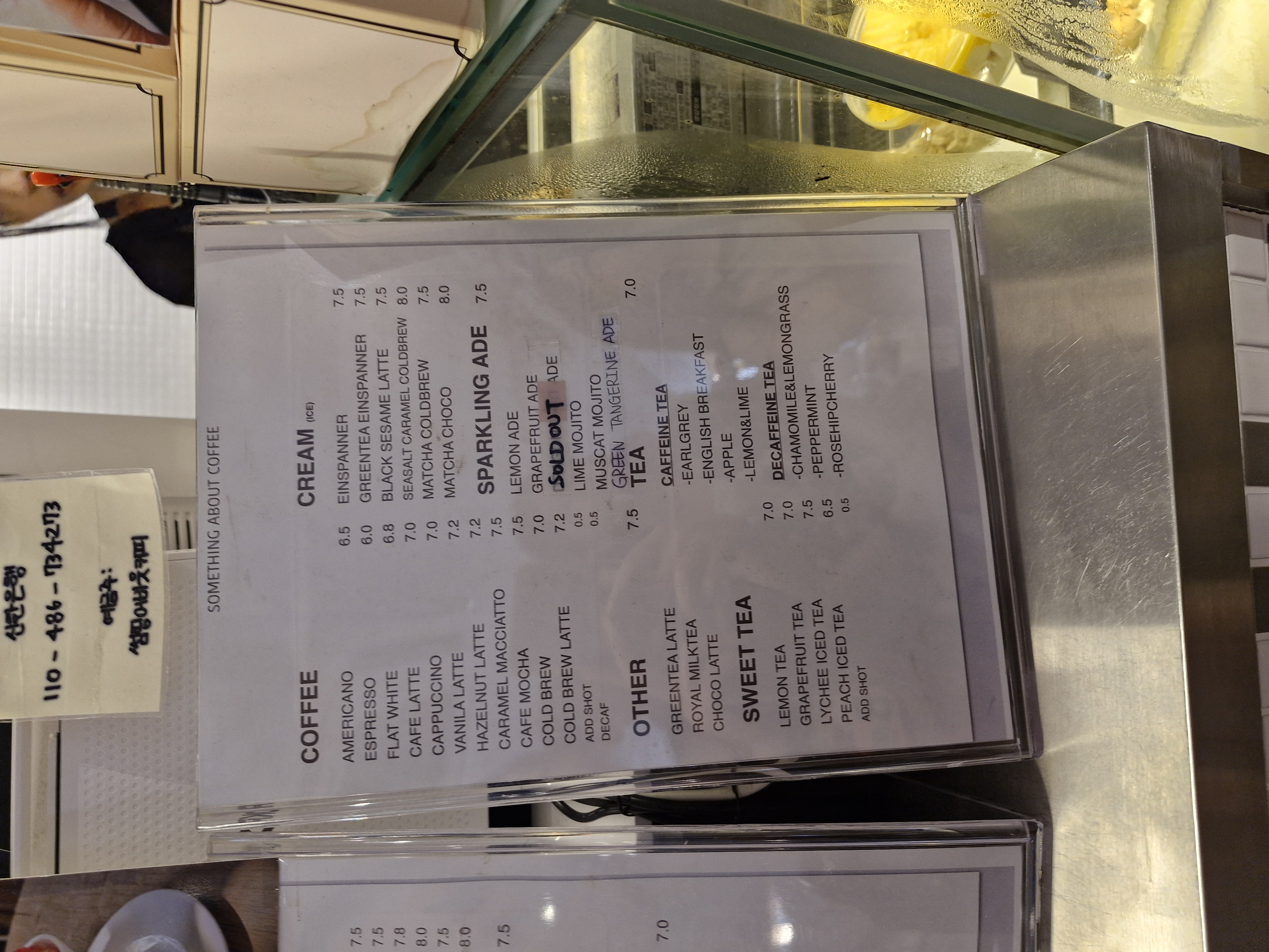 강남 썸띵어바웃커피 메뉴는 위와 같습니다