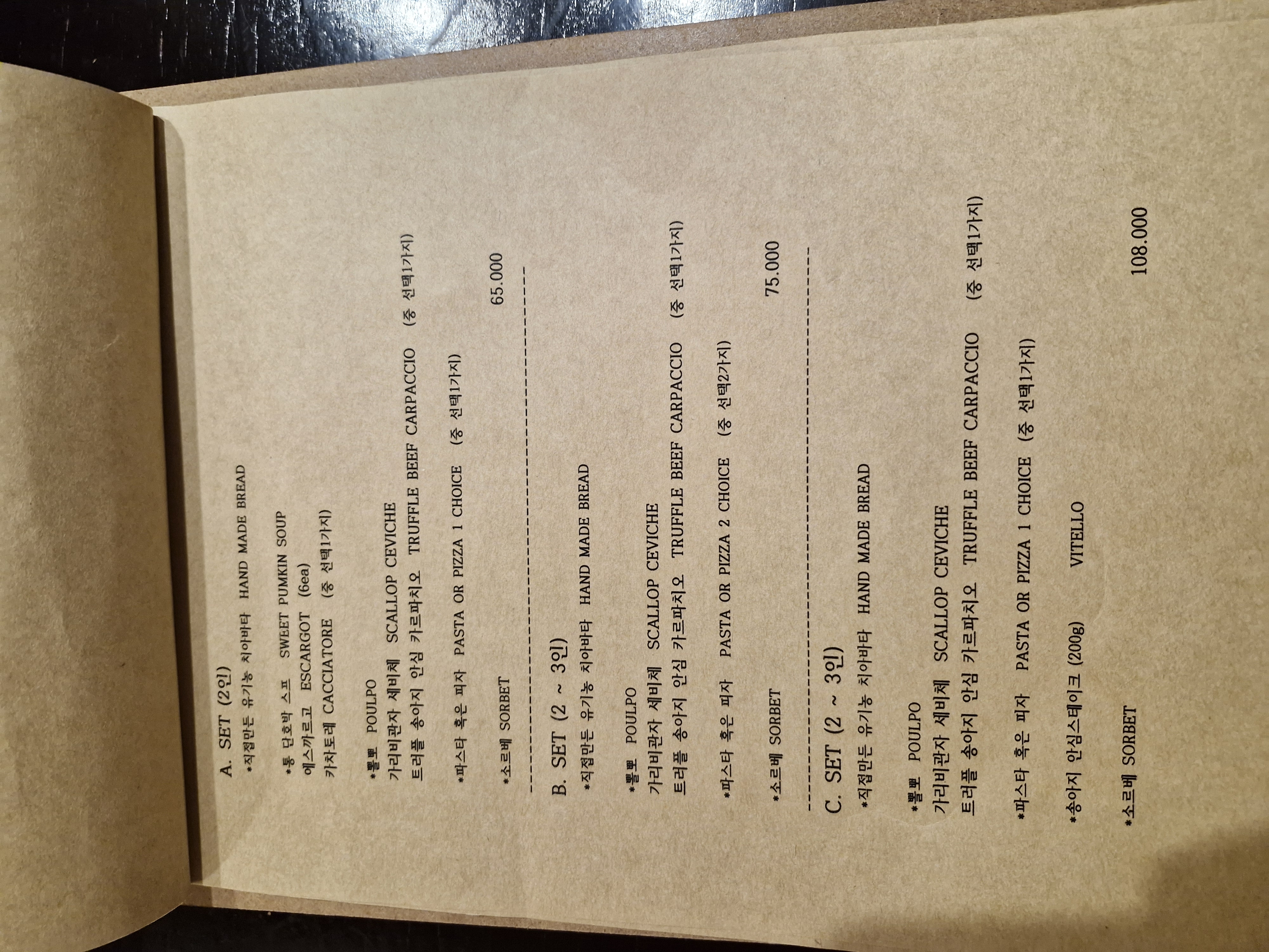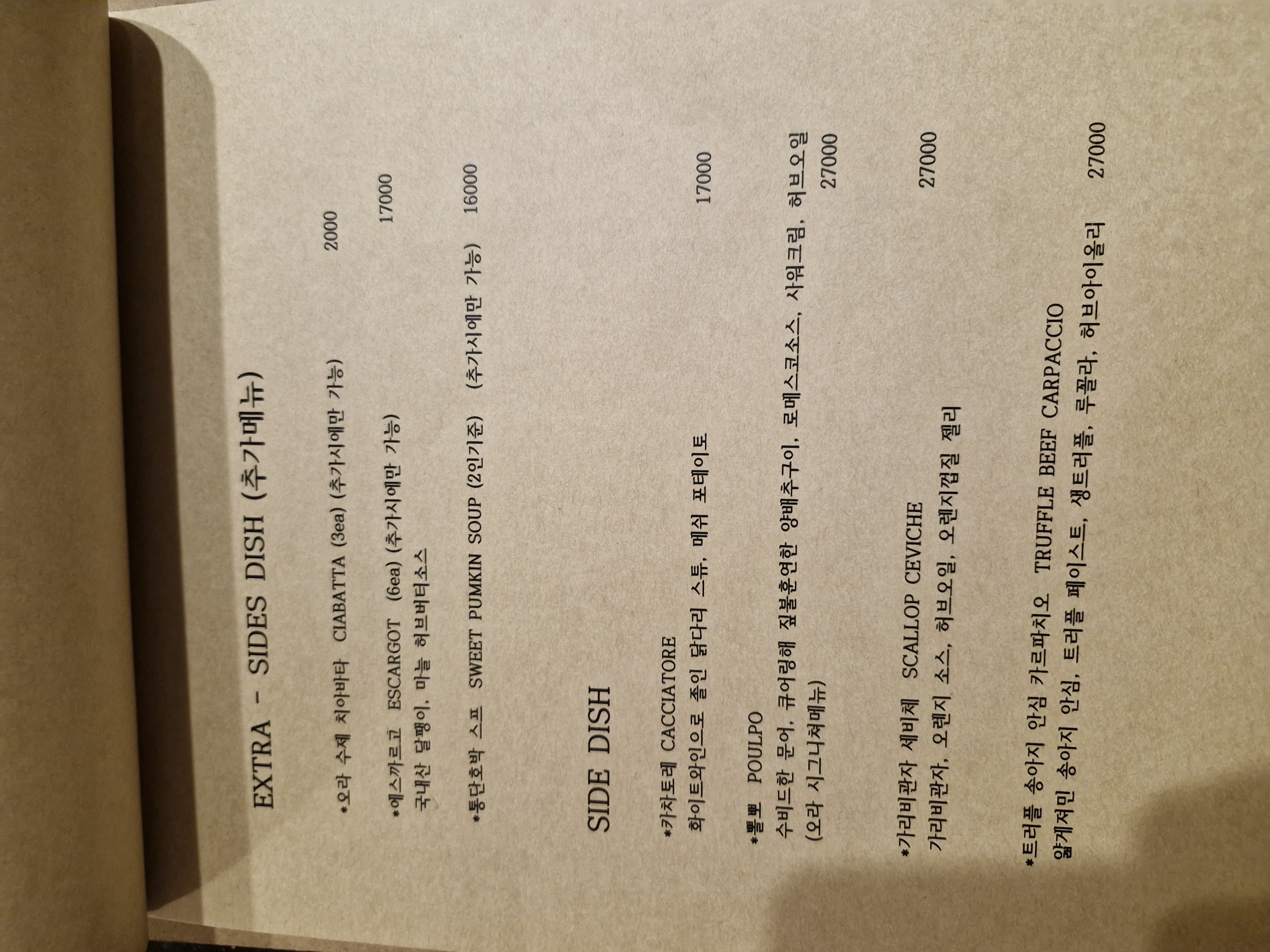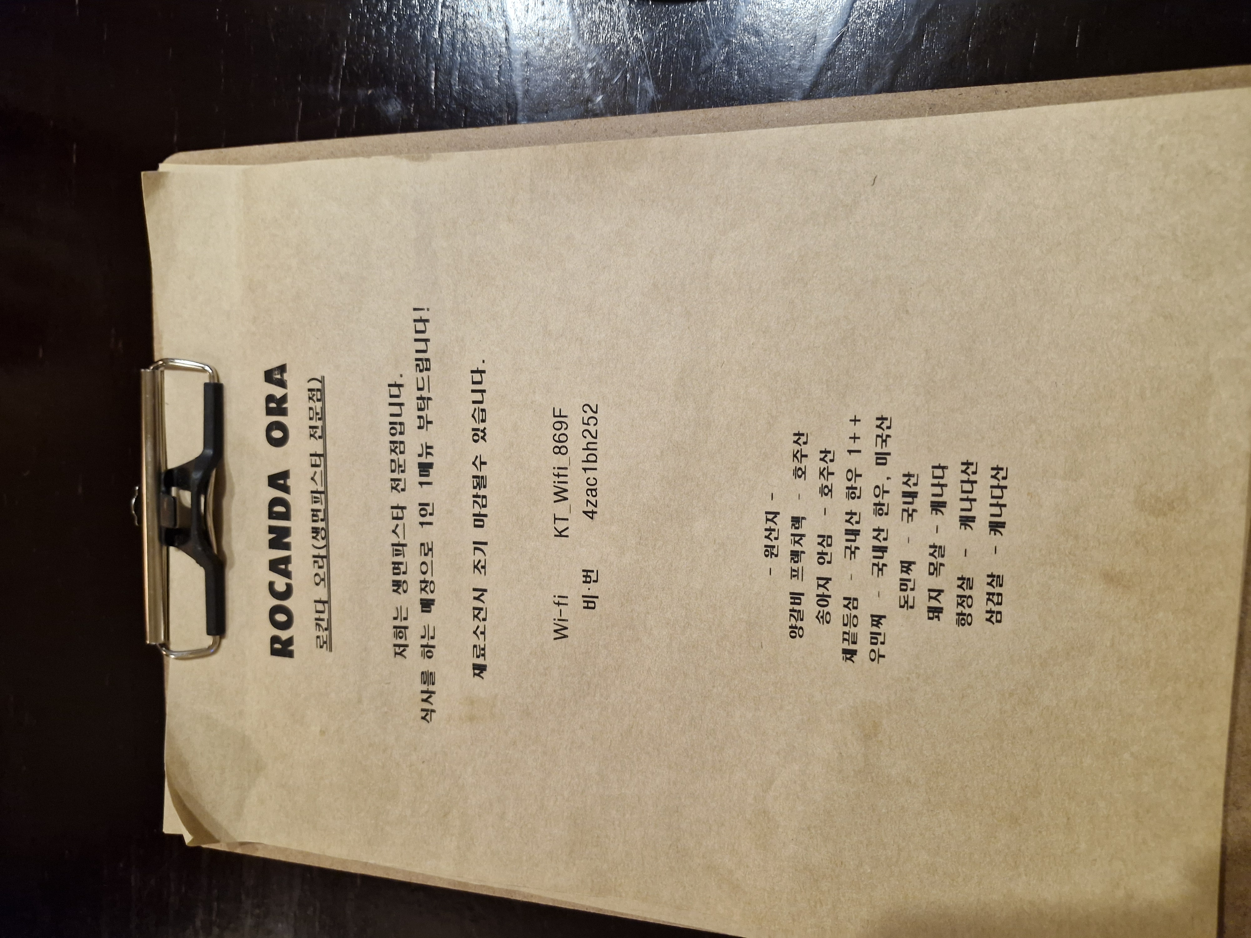 범어 양식 맛집 로칸다오라 메뉴입니다
