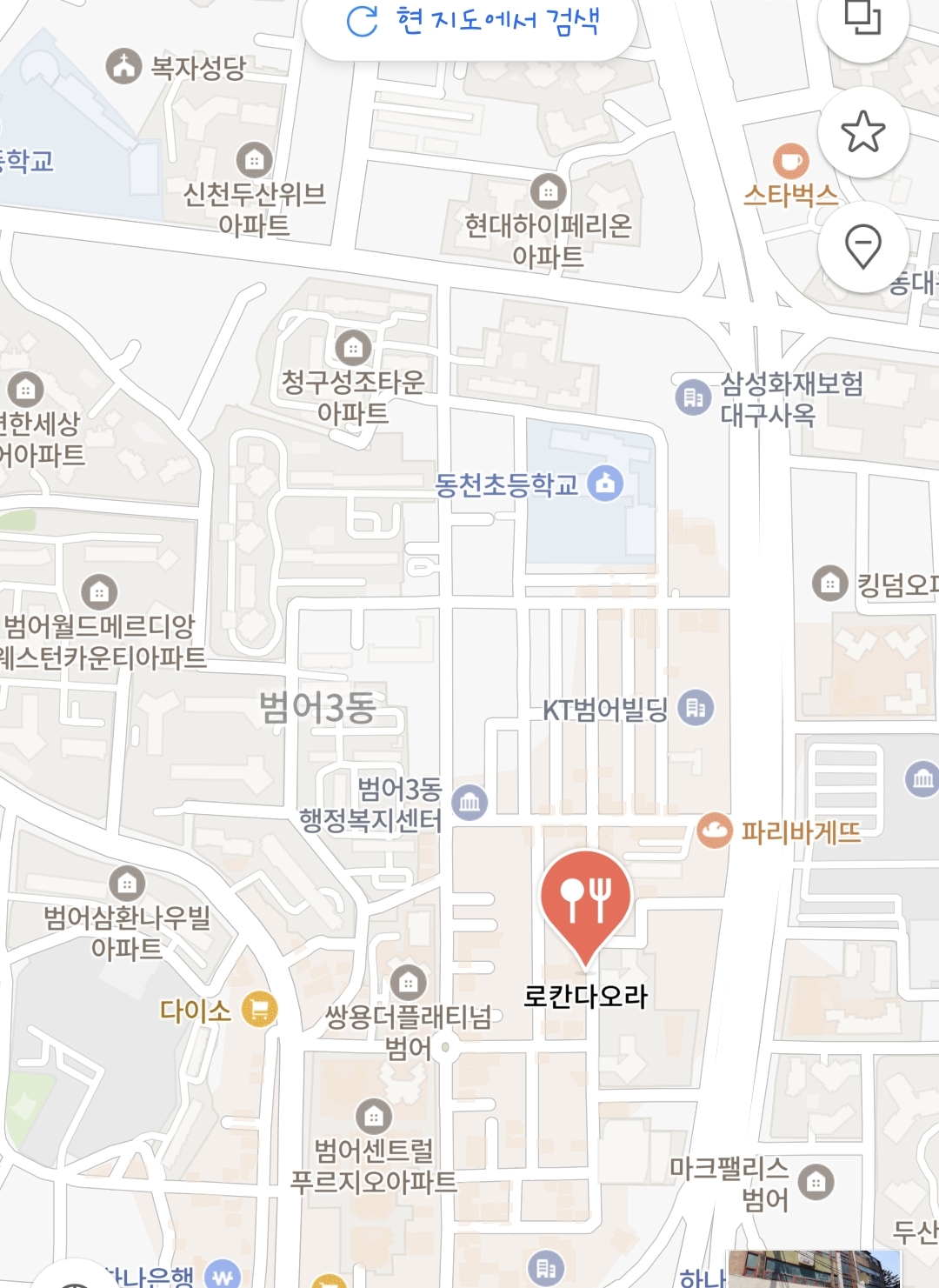수성구 범어동 생면파스타 레스토랑 '로칸다오라' 위치, 주차
