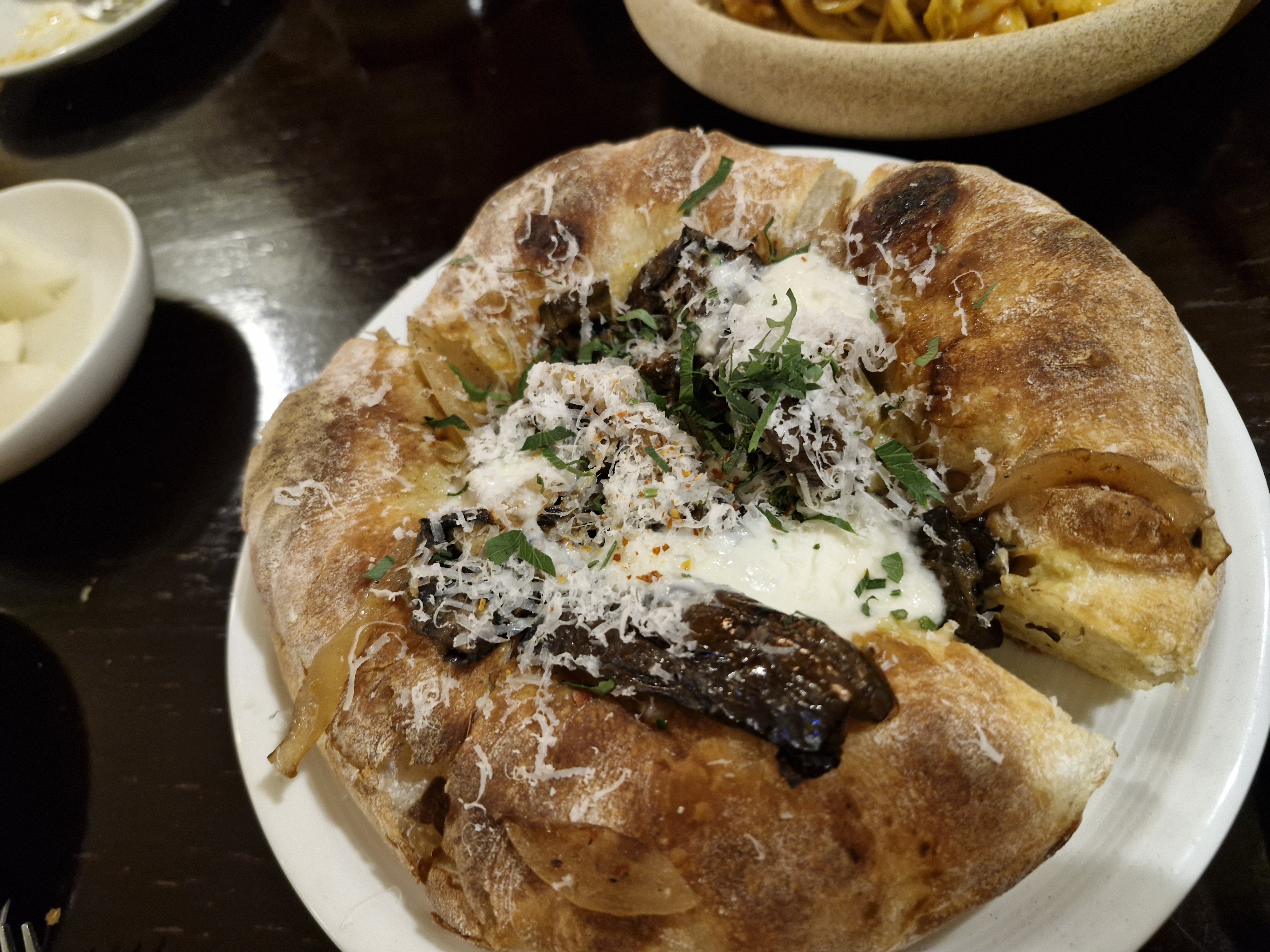 일단 피자라기보다는 약간 피자모양을 흉내낸 치아바타 빵에 가까웠고요