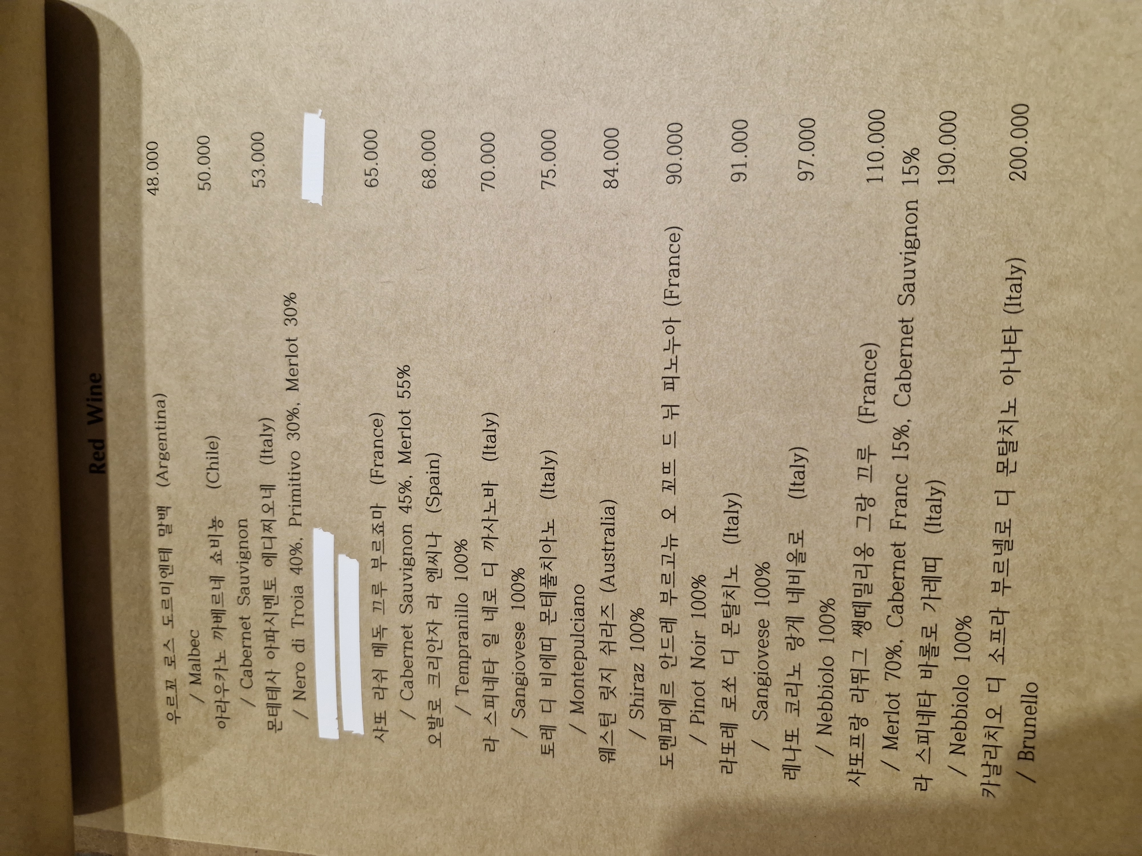 그리고 로칸다오라 와인 종류도 다양합니다