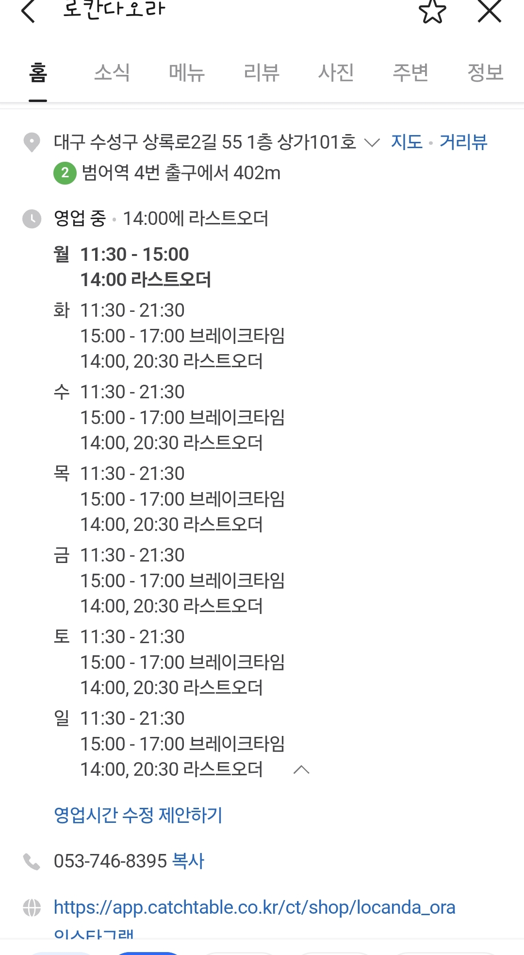 수성구 범어동 생면파스타 레스토랑 '로칸다오라' 예약방법