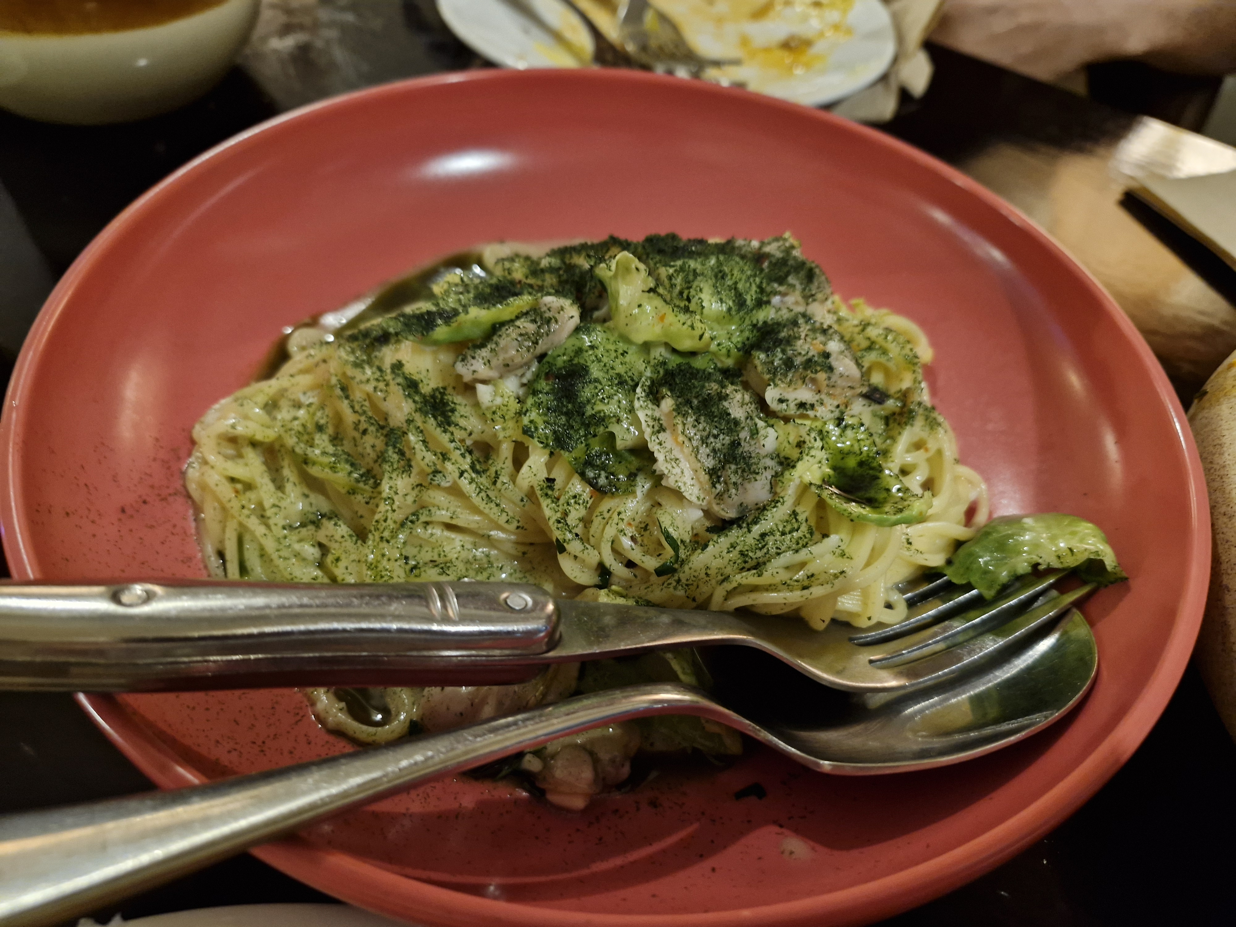 함께 시킨 매생이 백합 봉골레 파스타입니다
