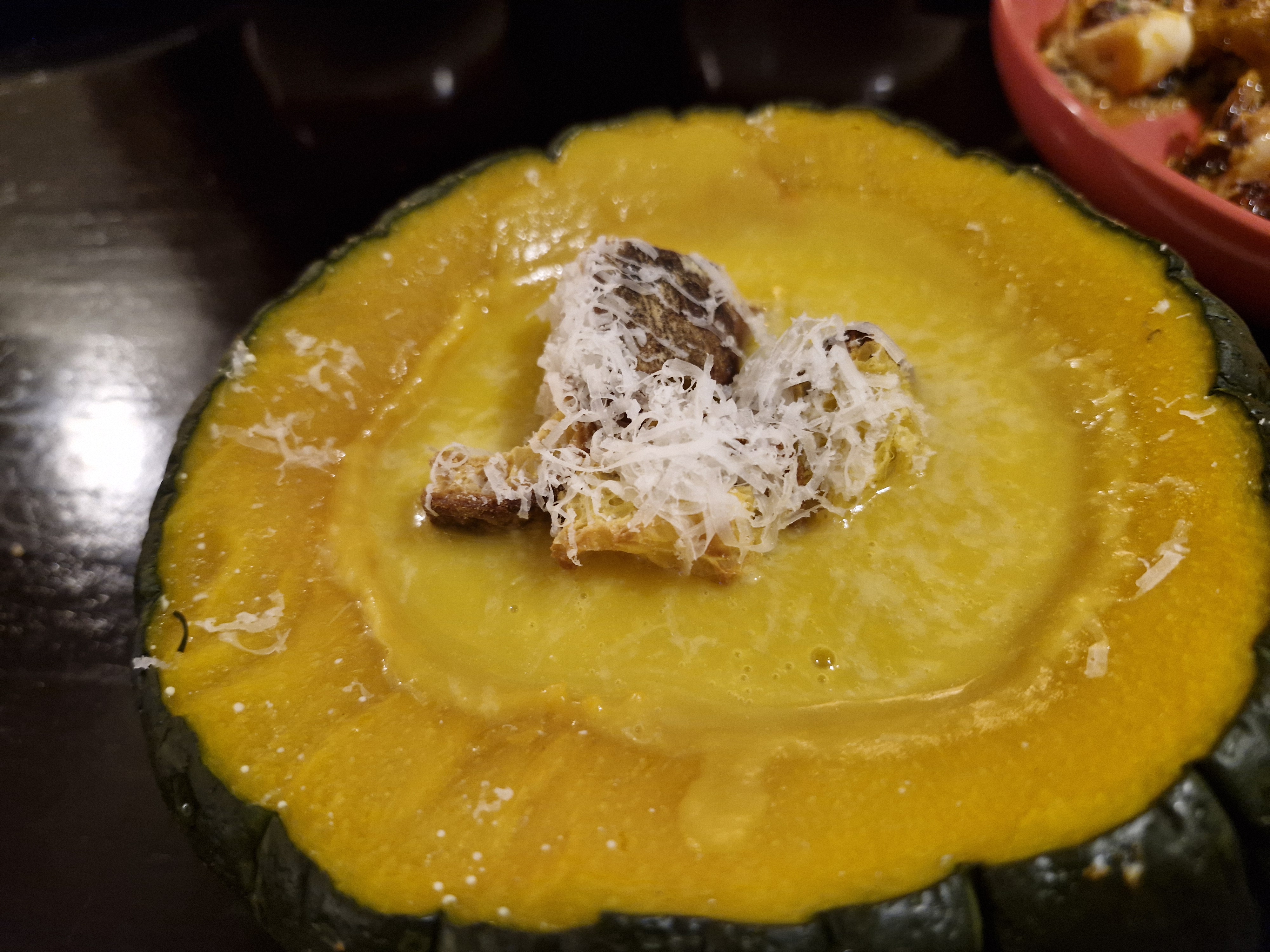안 시키려다가 궁금해서 주문한 로칸다오라 단호박 스프입니다