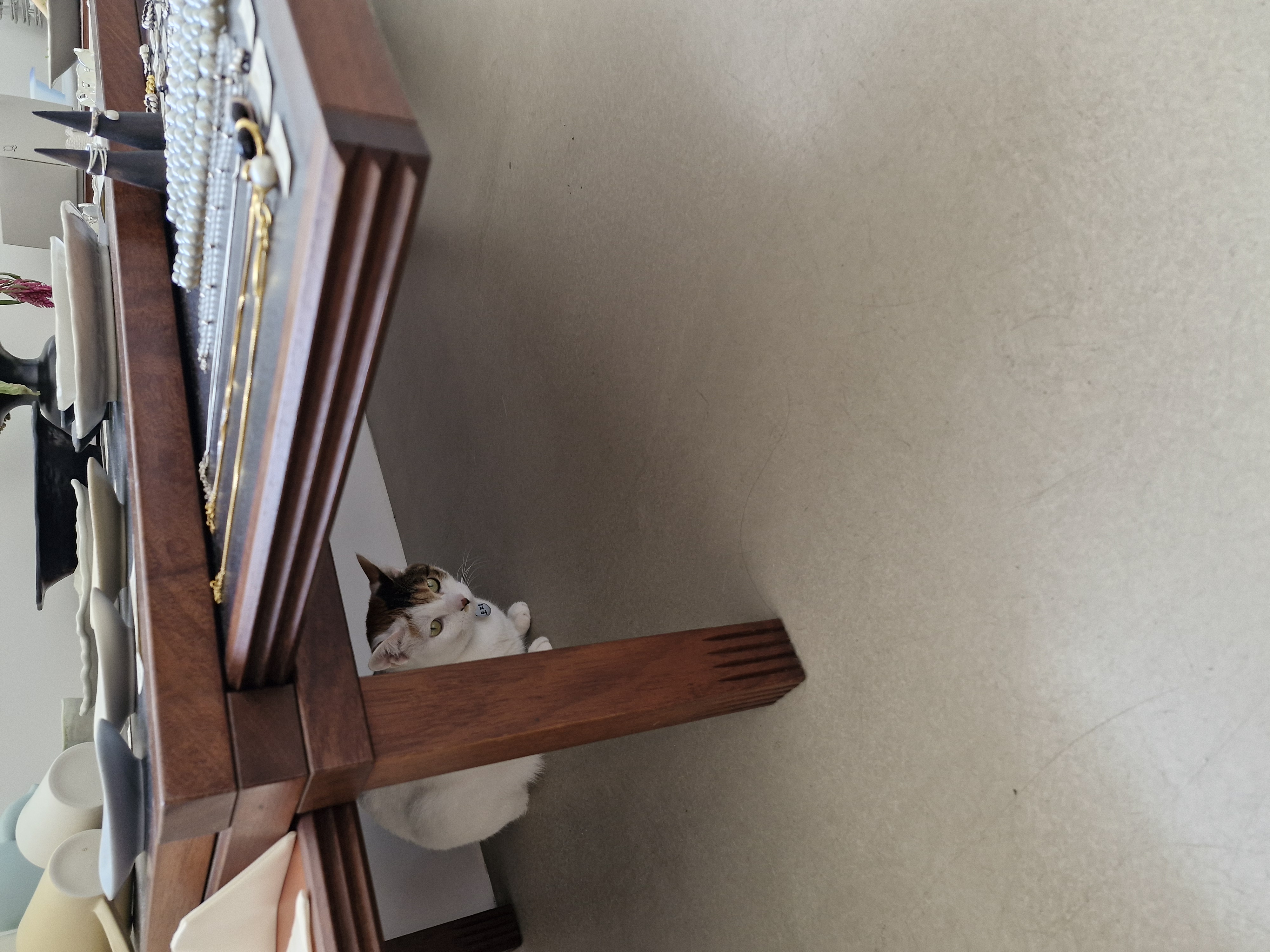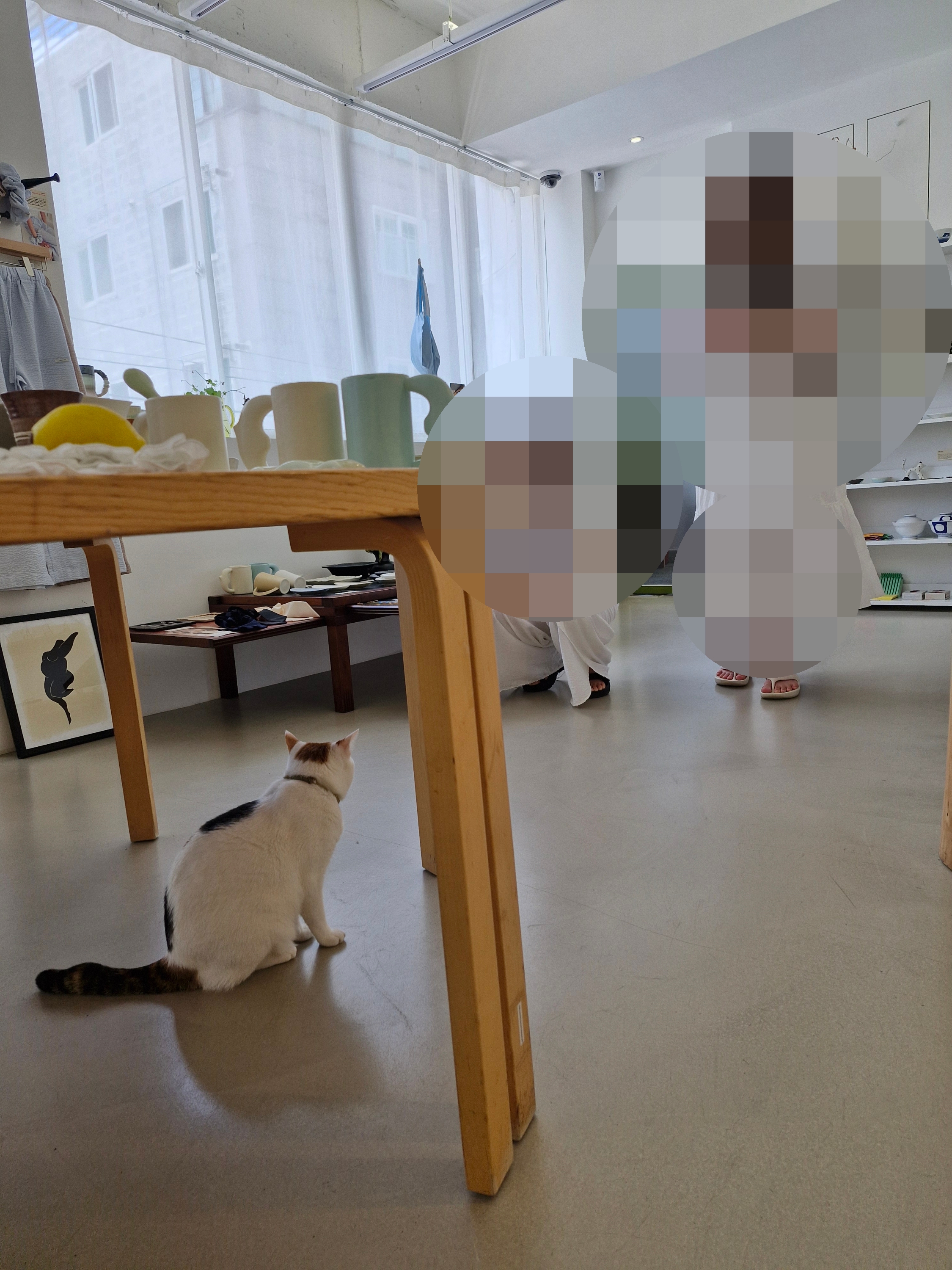 가게 어딘가에서 불쑥 튀어나오는 삼색이 냥이