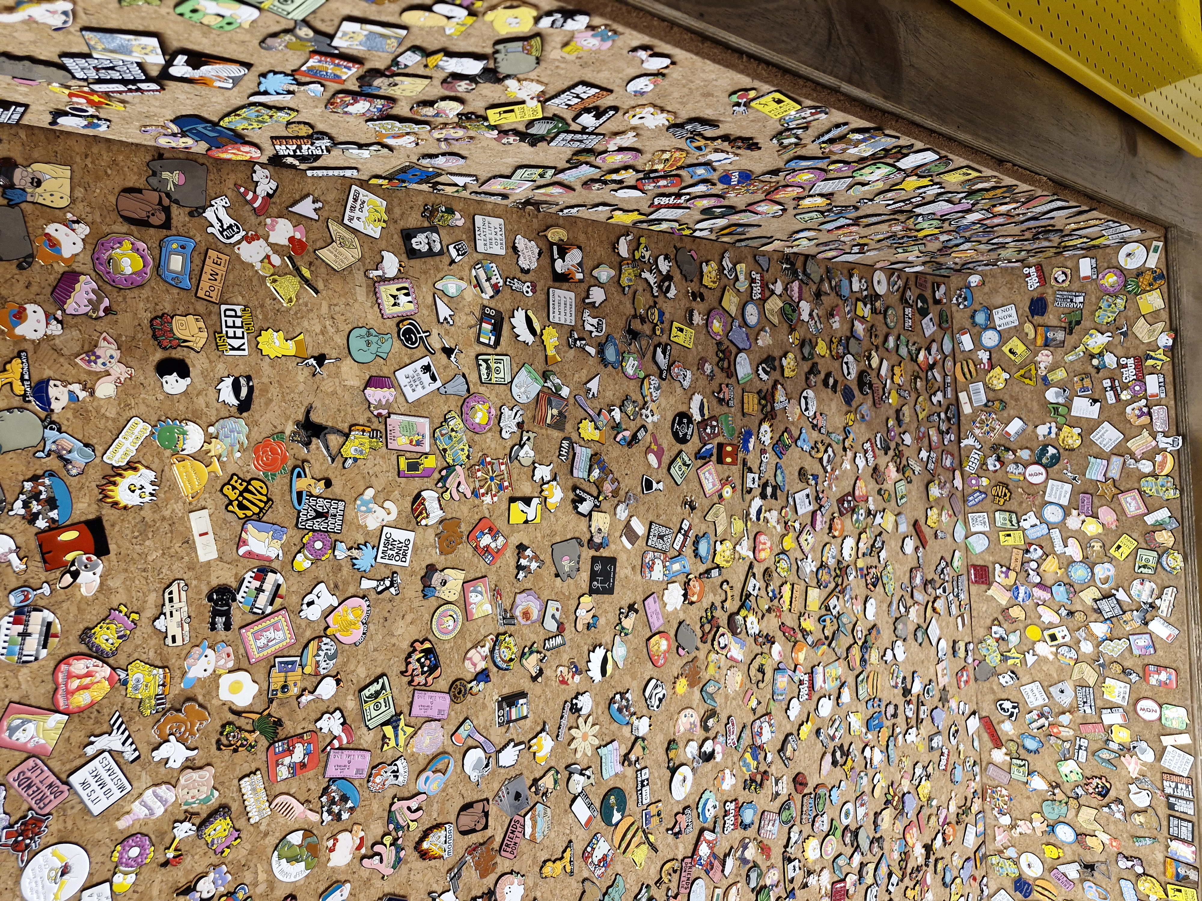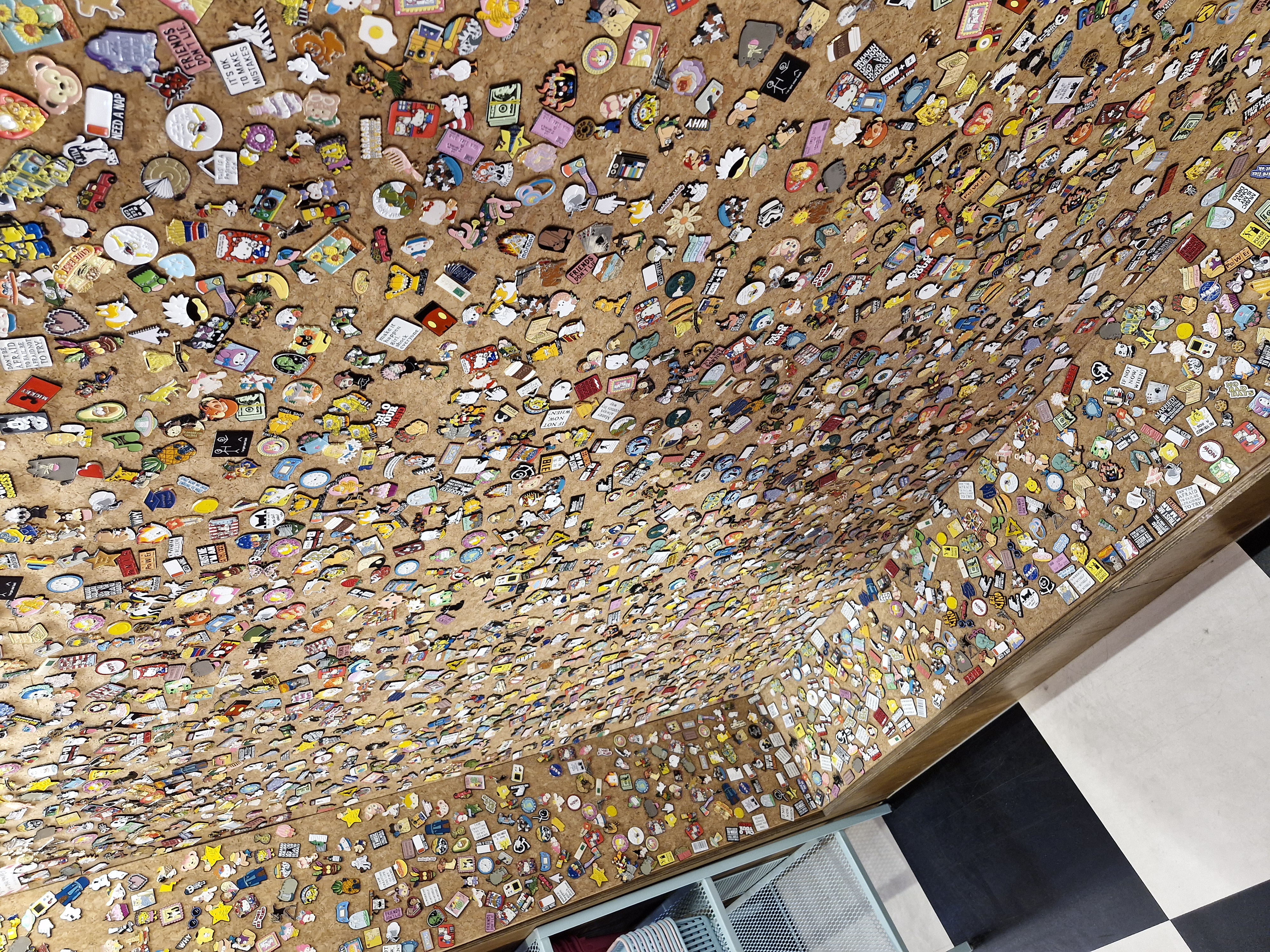바로 가지각색의 뱃지들을 코르크판에 쫘악 붙여놓은 곳입니다