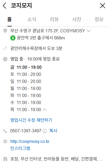다음에 광안리 또 가더라도 코지모지에 다시 들러볼 것 같습니다!
