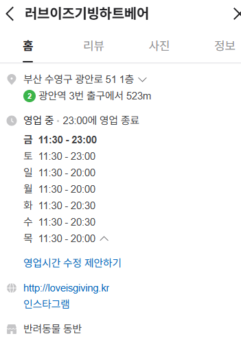 러브이즈기빙 하트베어랑은 다른 지점입니다