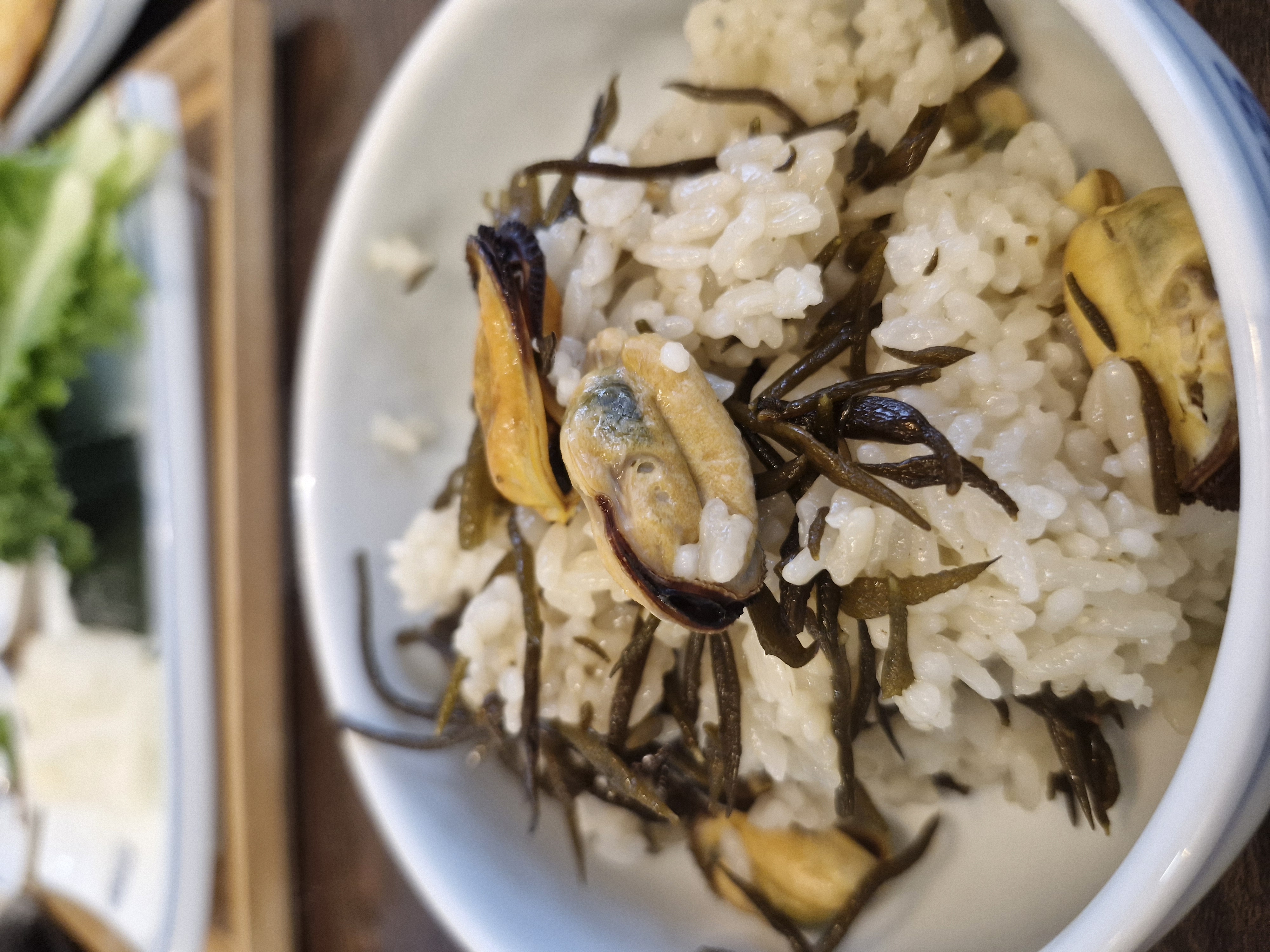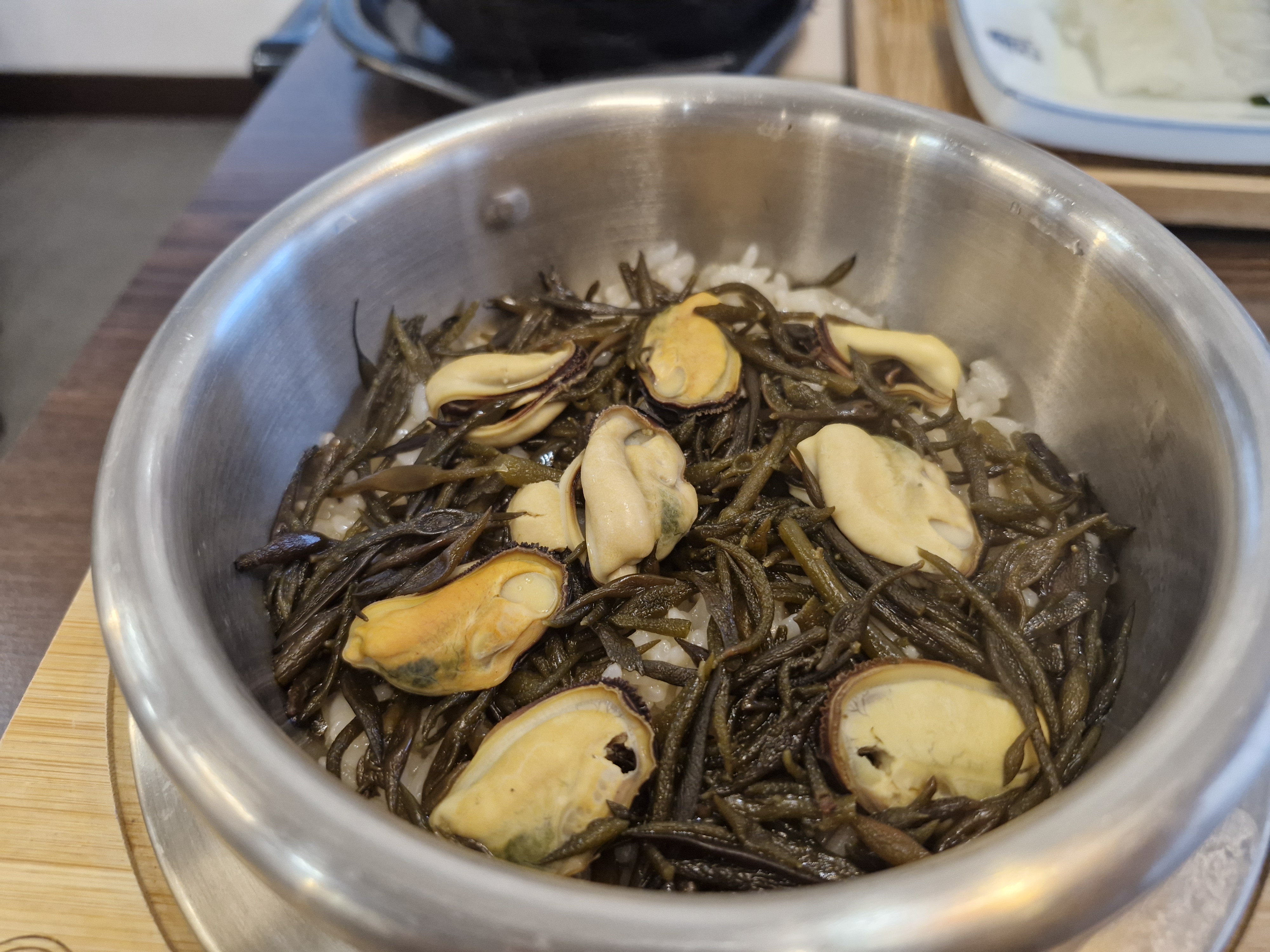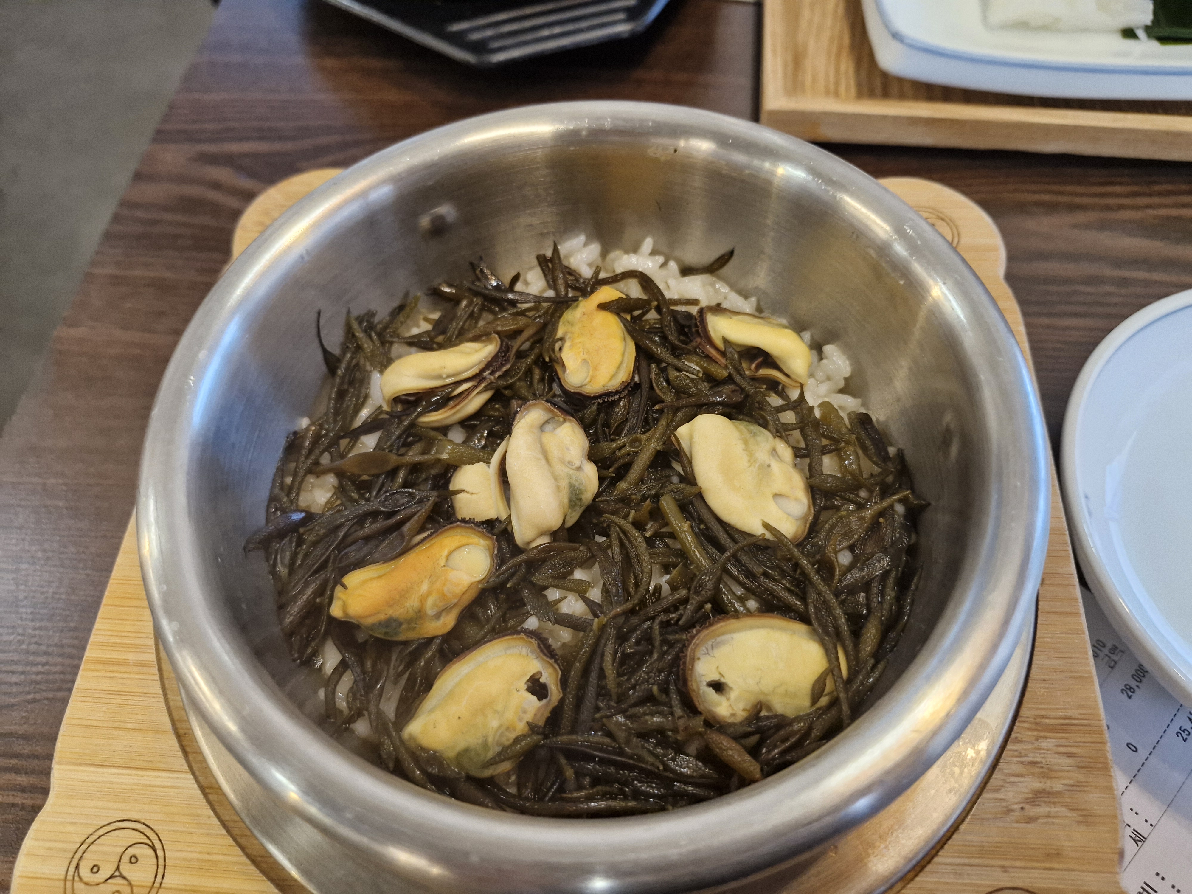 그리고 제일 중요한 홍합 톳 솥밥인데요