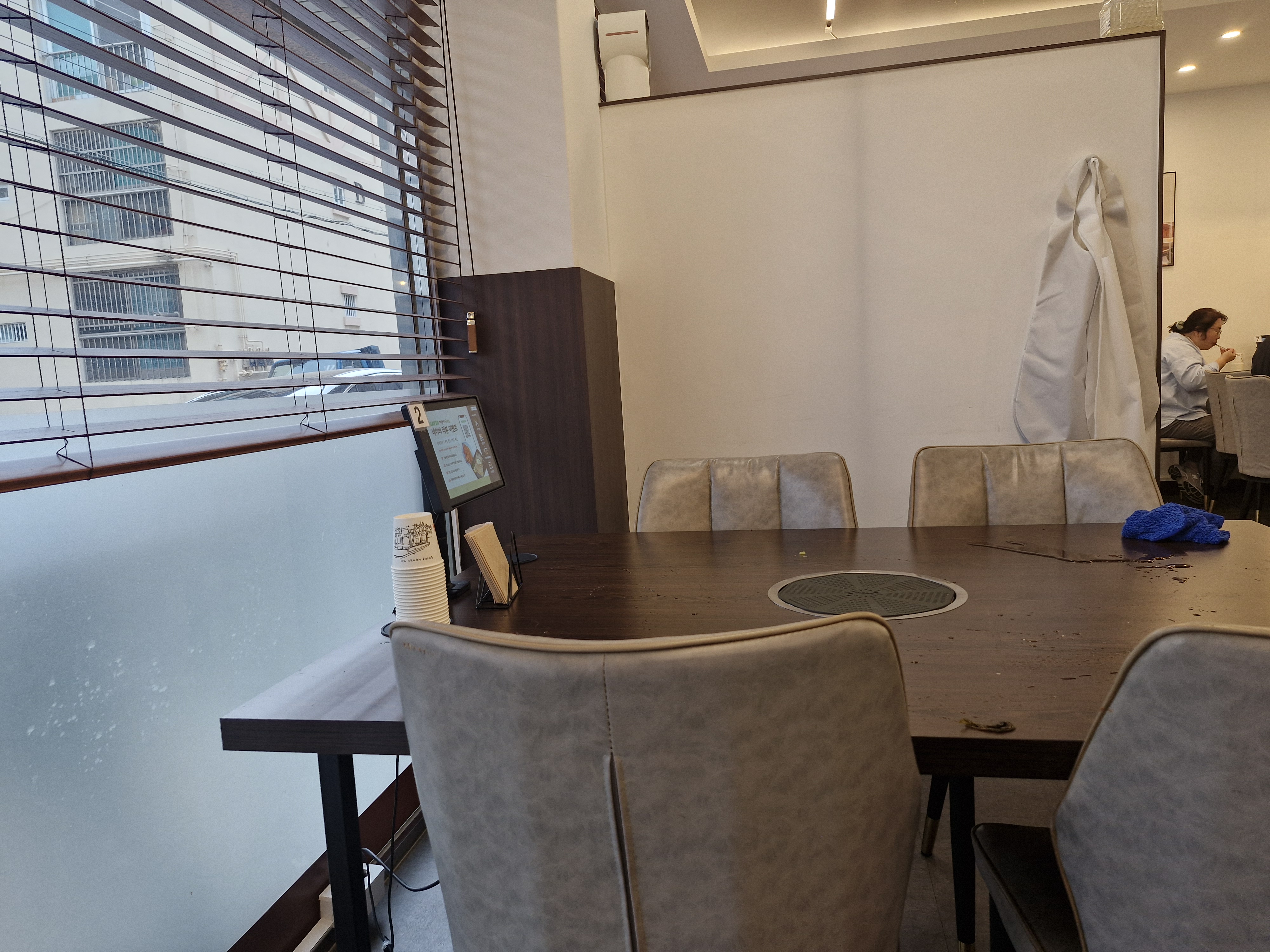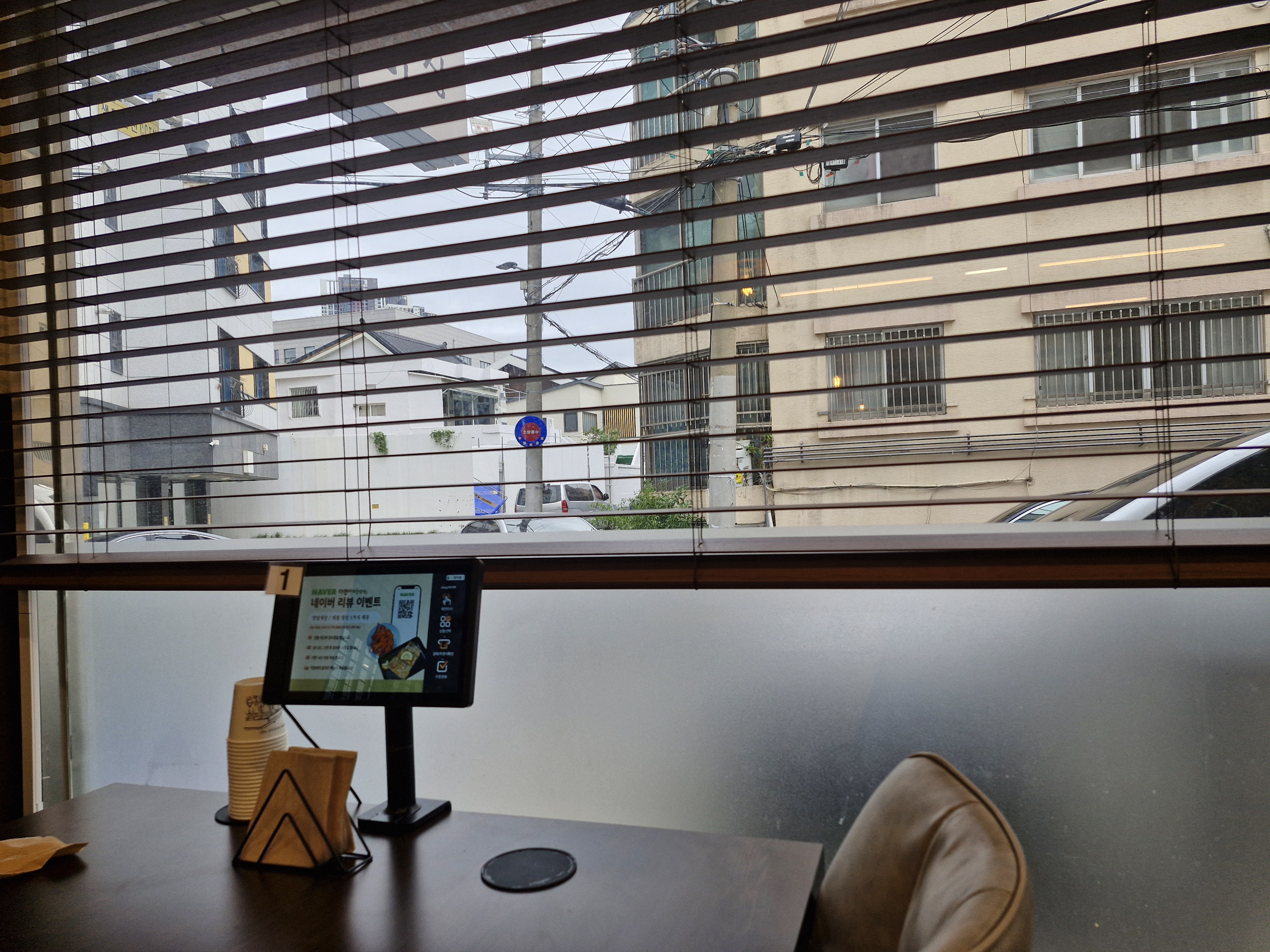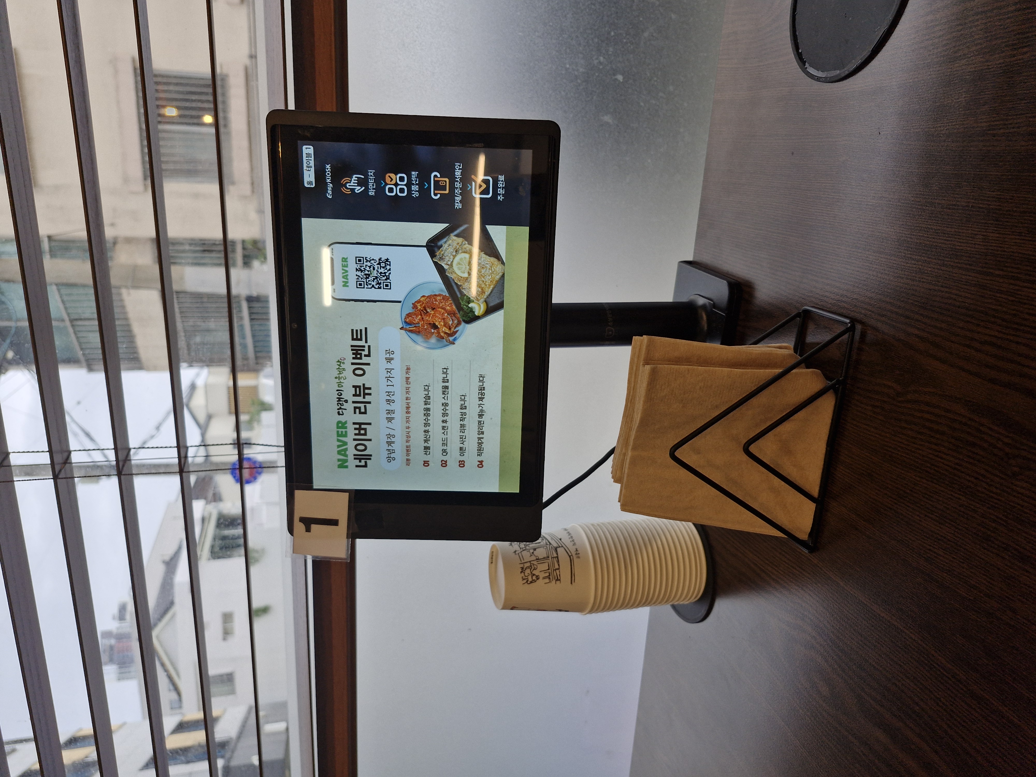 가게 내부에서는 자리에 있는 키오스크로 주문을 하시면 되고요