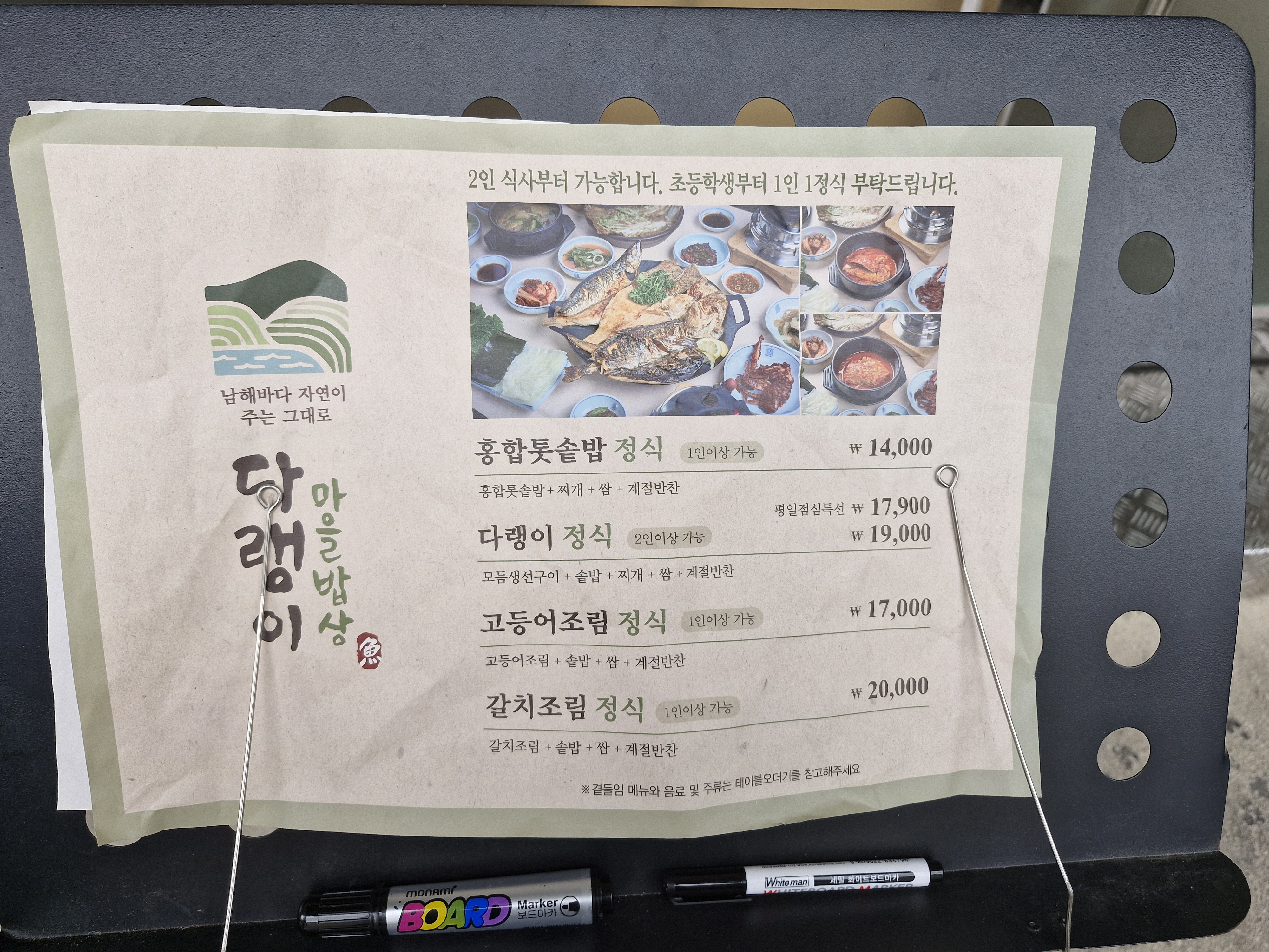 앞산 부모님 모시고 가기 좋은 식당 다랭이마을밥상에서 웨이팅을 할 경우 가게 앞 보드에 이름을 적어두고 기다리면 됩니다