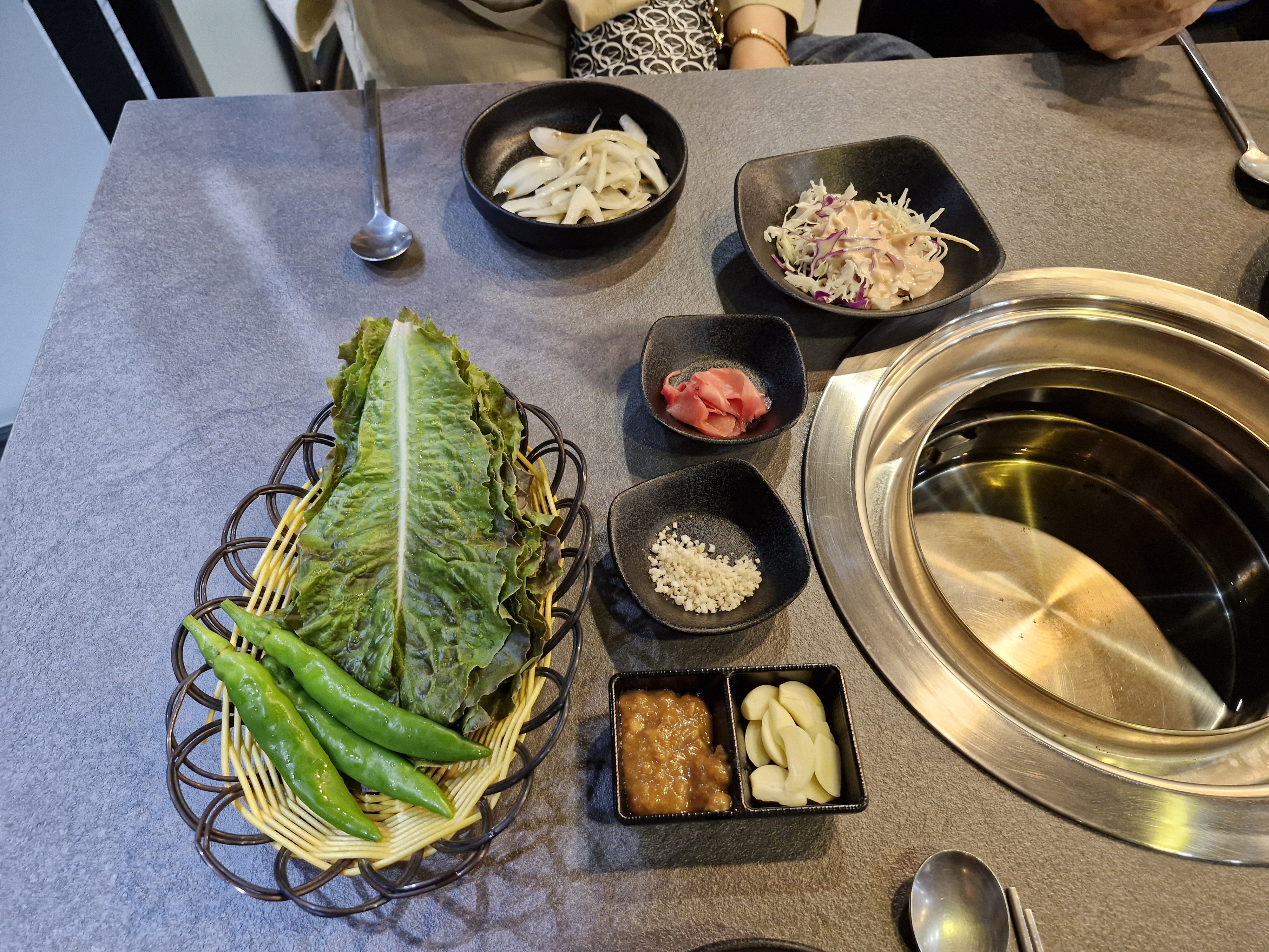 그리고 초밥집처럼 초생강이 나오는 게 특이했어요