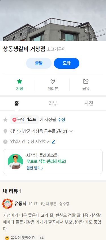거창군청 거창읍 신상맛집 한우 '상동생갈비' 위치, 주차