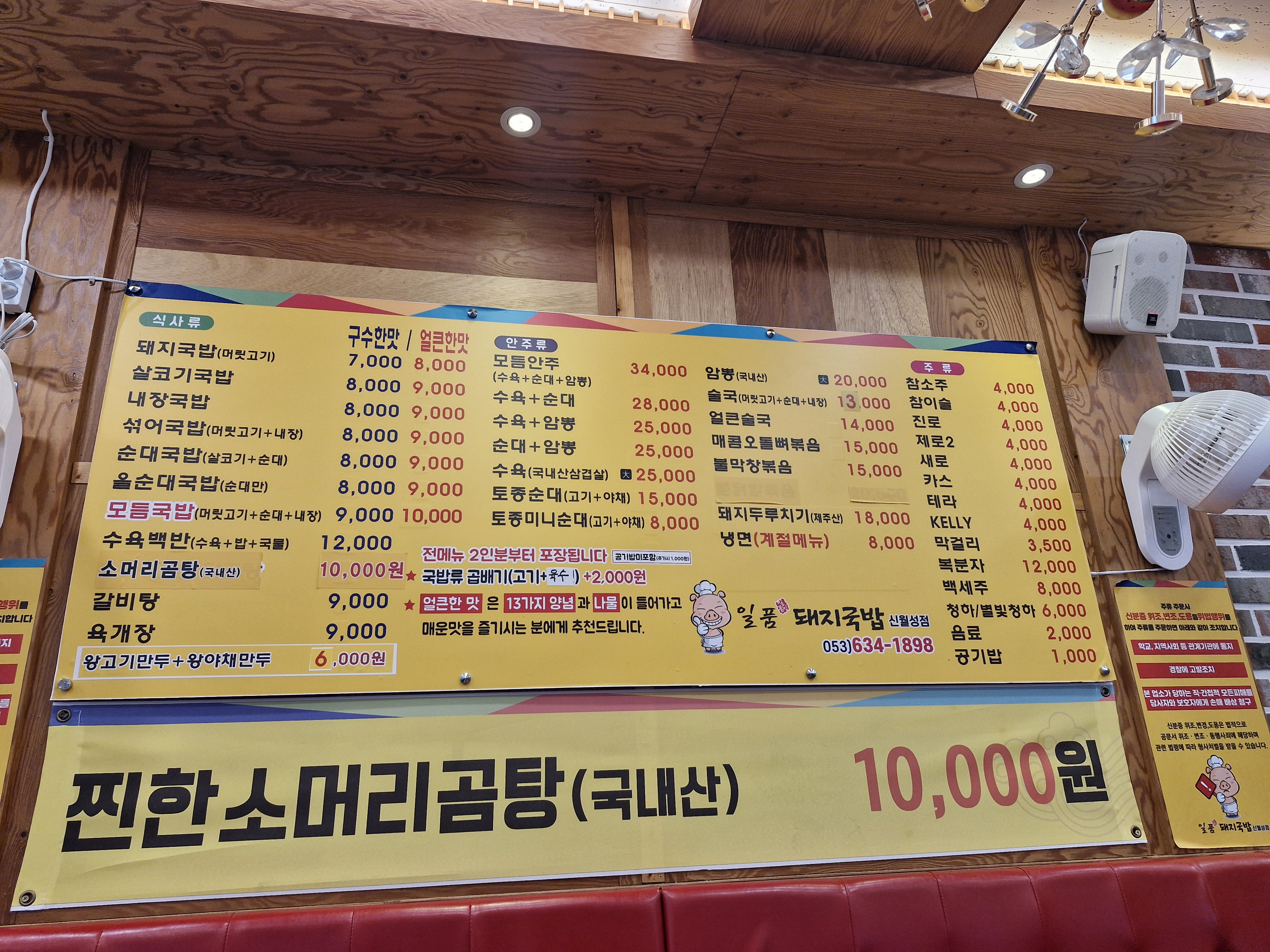 신월성 아침식사 '일품돼지국밥' 메뉴, 내부