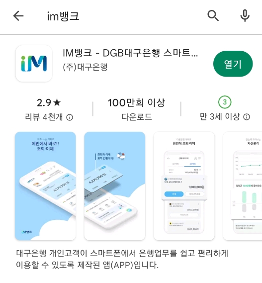 IM뱅크 앱을 다운받습니다