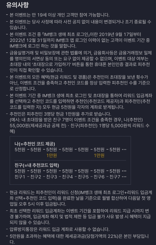 전용 어플 'IM뱅크' 가입 이벤트를 진행합니다