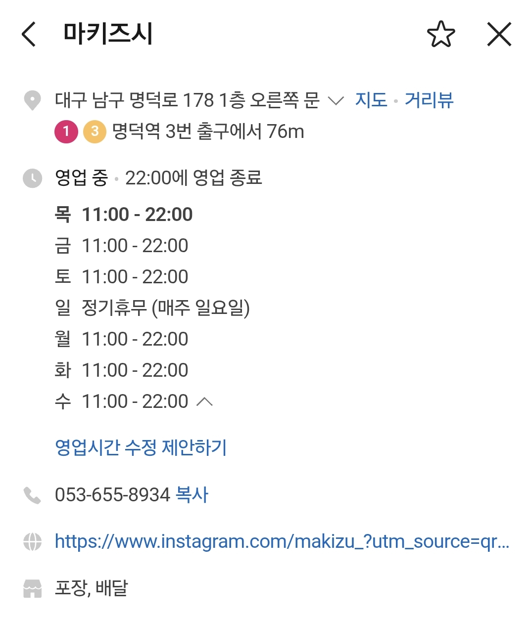 명덕역 마키즈시 인스타그램 계정