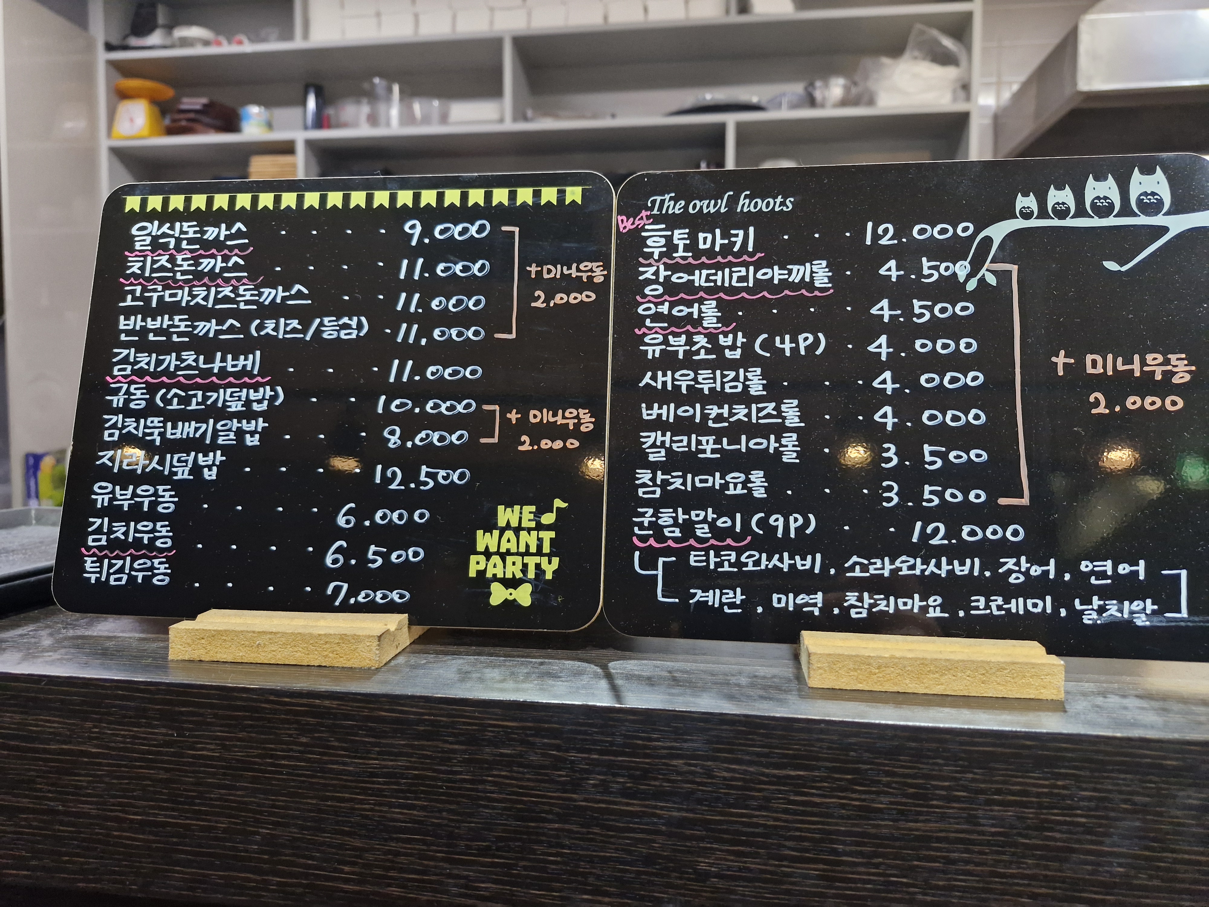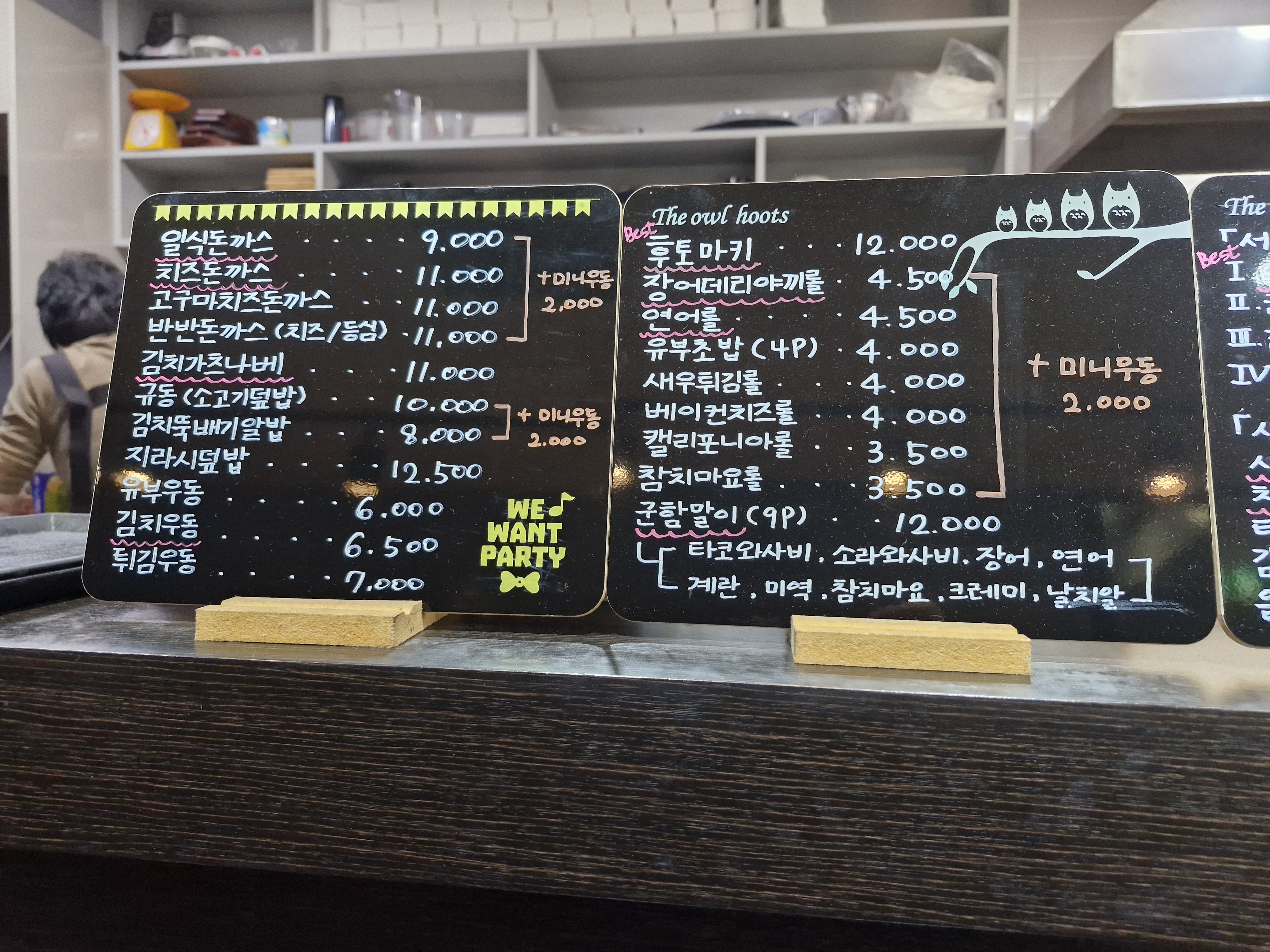 마키, 초밥롤 외에도 김치나베 돈까스 알밥 등 간단히 식사를 해결할 수 있는 일식 메뉴들이 눈에 띕니다