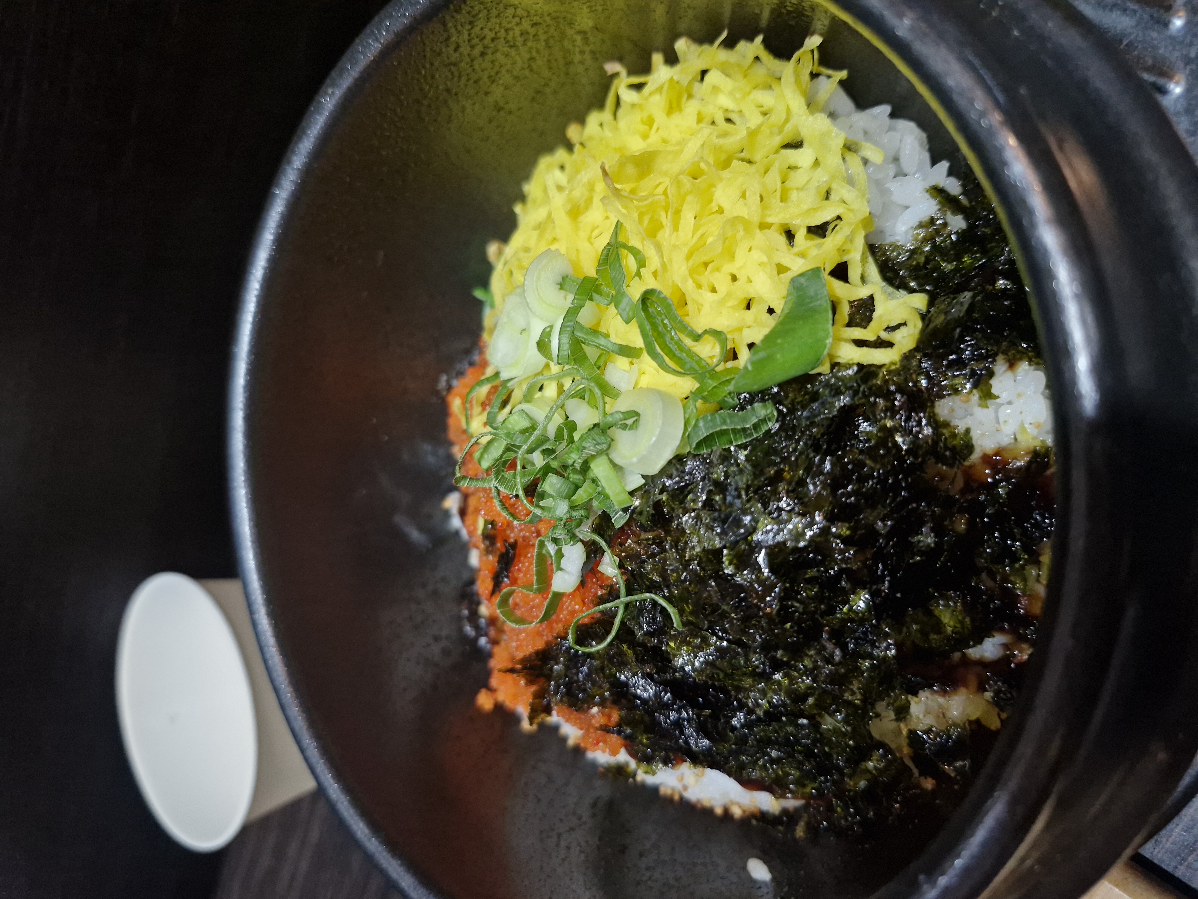 여러 고명이 뜨거운 솥에 살짝 눌러붙어서 아주 맛있는 식사가 됐습니다
