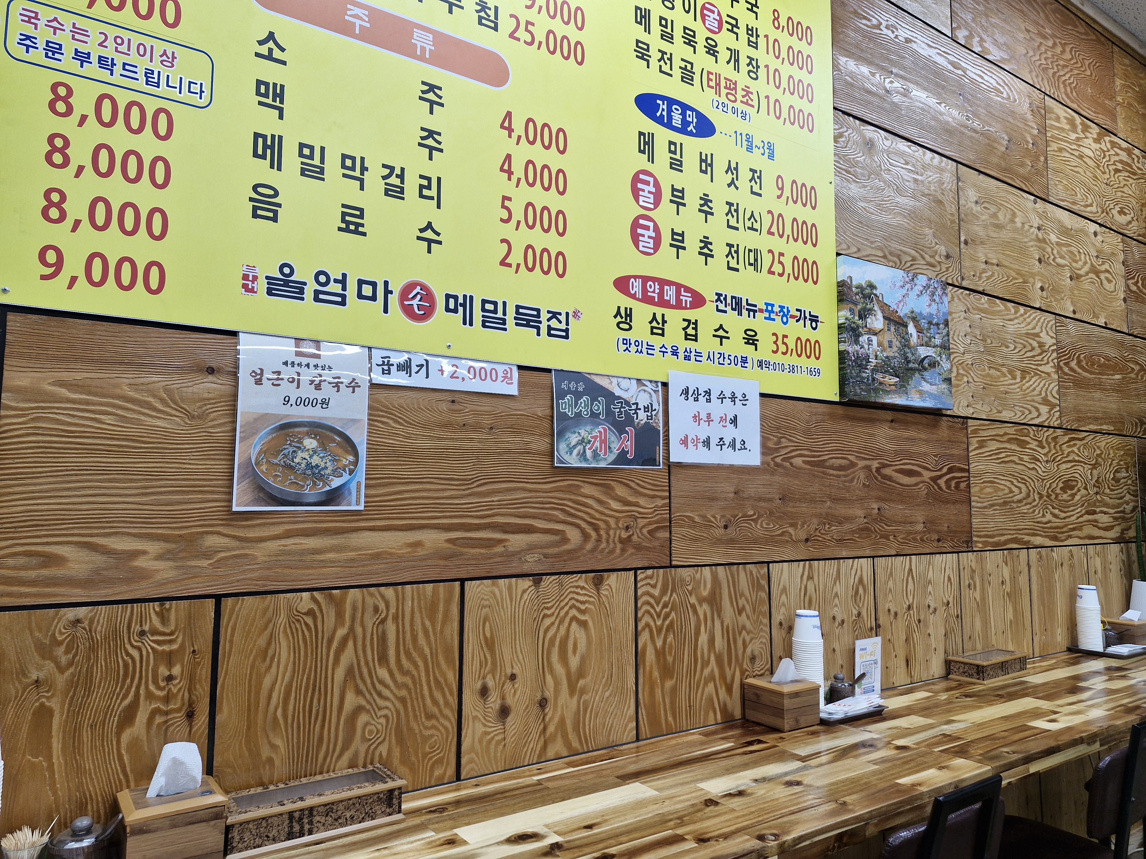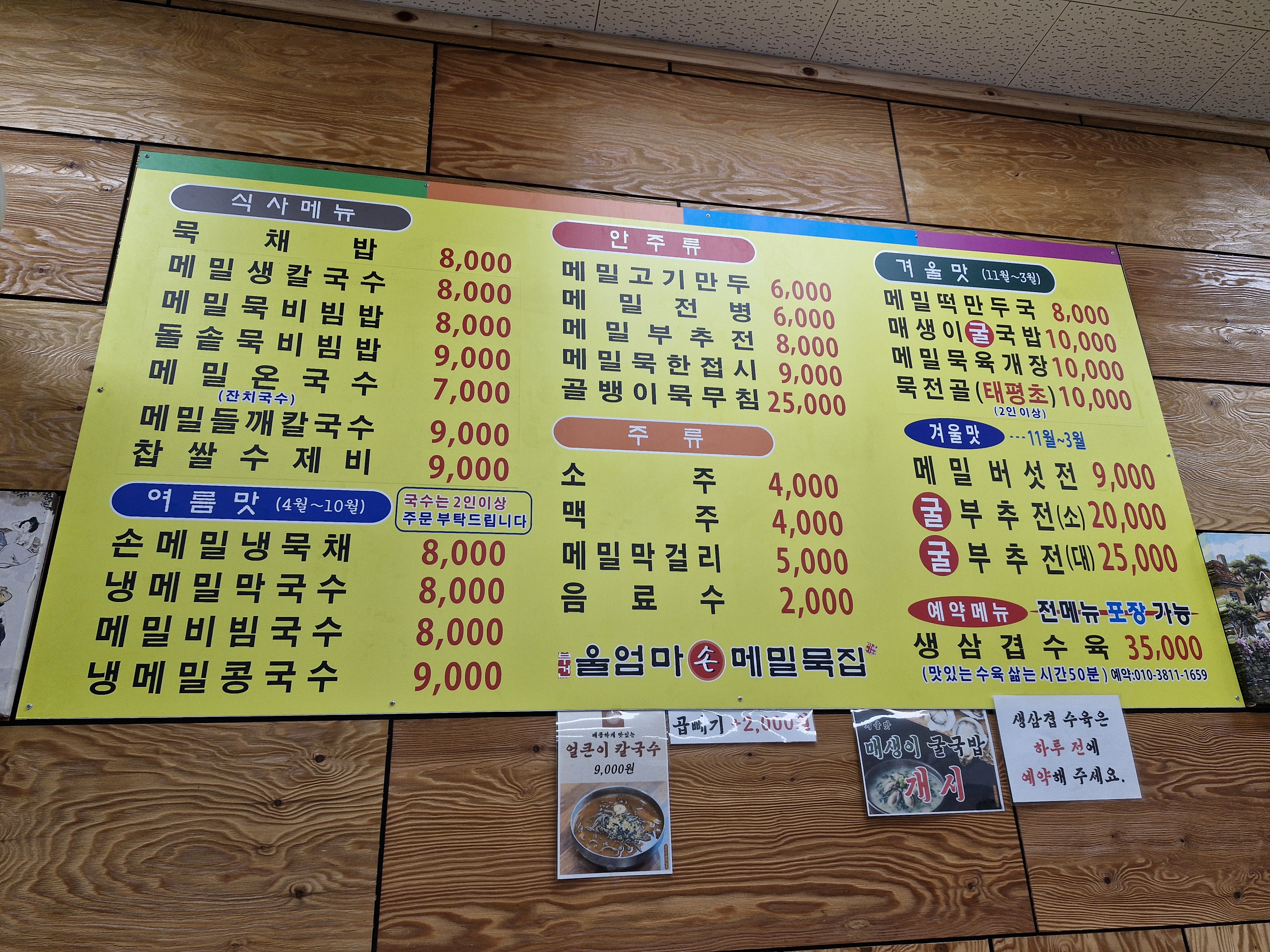 달성군청 '울엄마손메밀묵집' 내부, 메뉴
