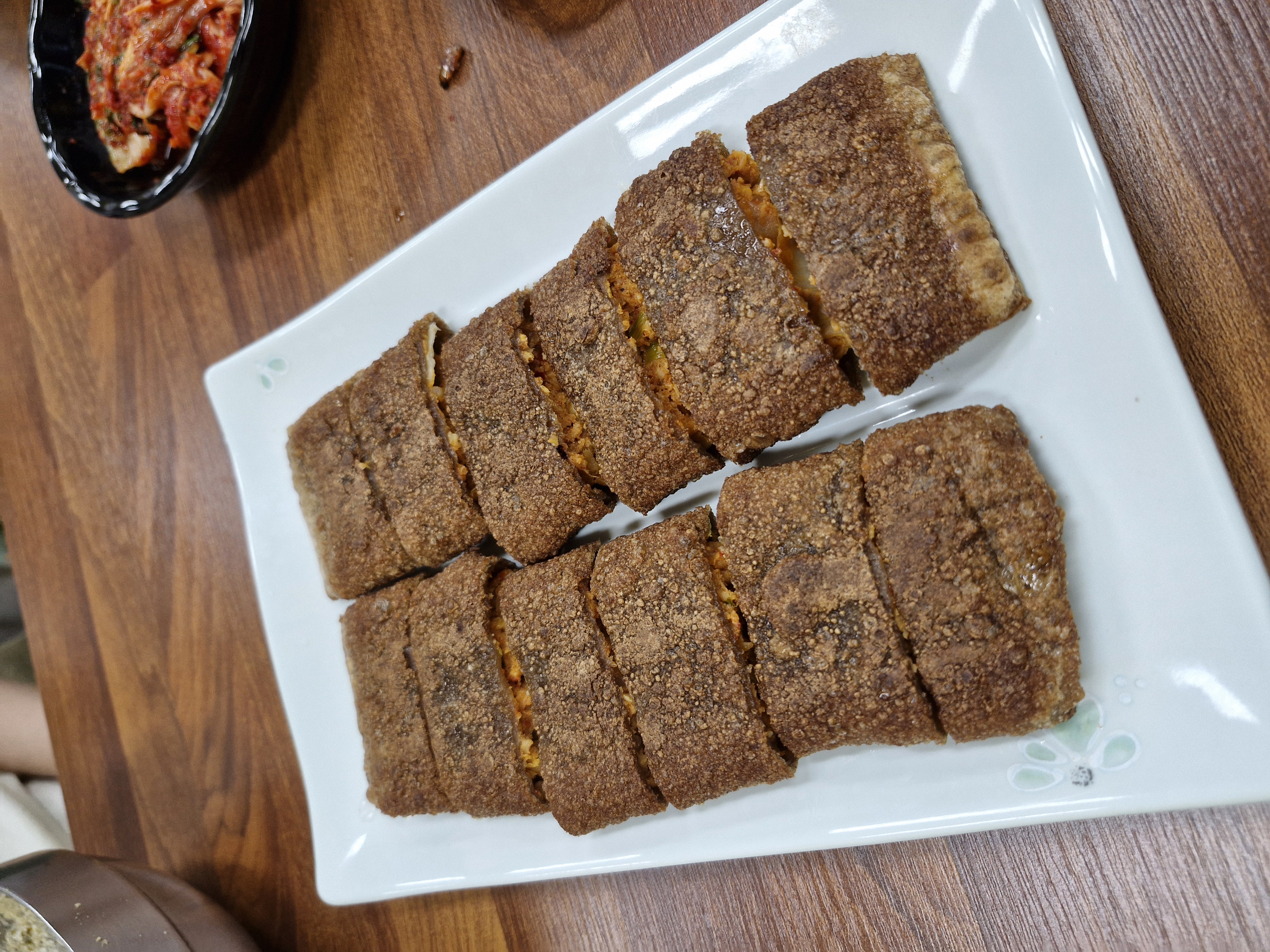 김치 등의 속이 잘 어우러진 데다 바삭하게 굽힌 전병까지 더해져서 아주 맛있습니다