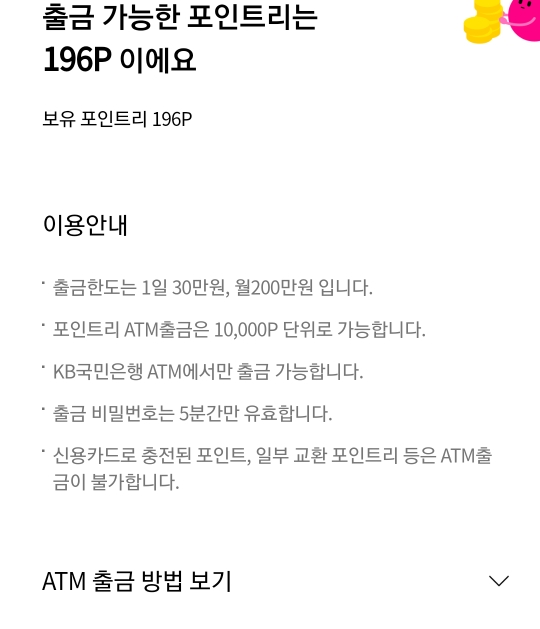 국민은행 atm으로 포인트리를 현금 출금하는 기능도 있으니 급할때 활용해 보세요
