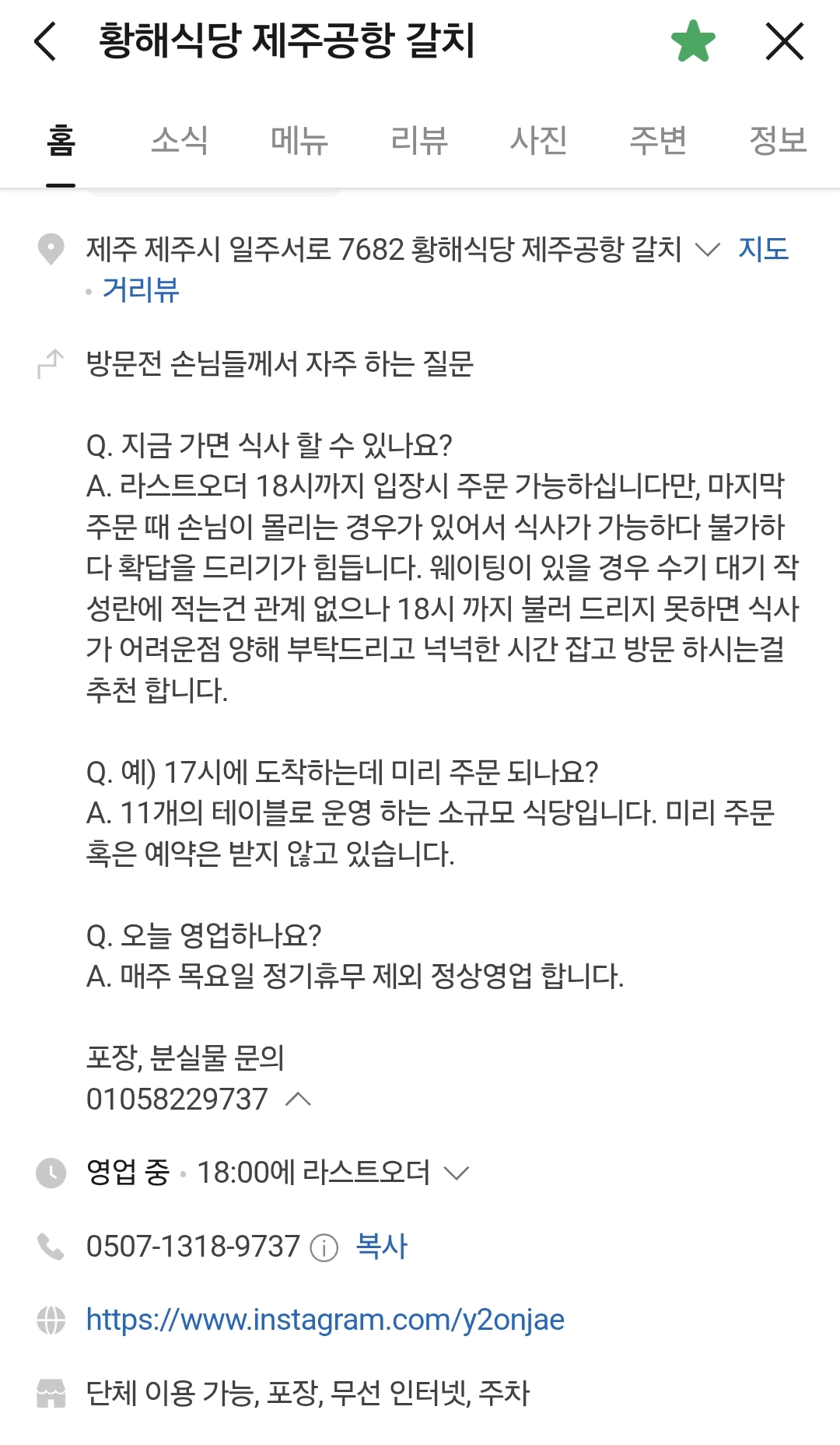 📍 황해식당 웨이팅이 있을 경우