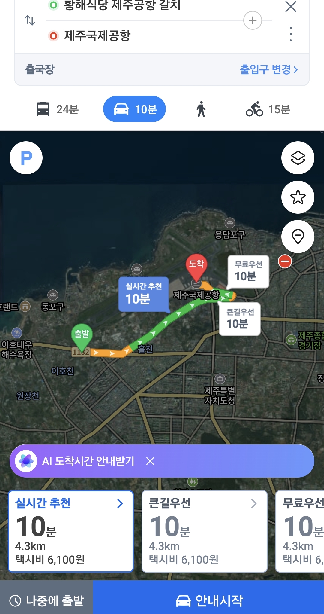 제주공항 인근 갈치요리 '황해식당' 위치, 거리